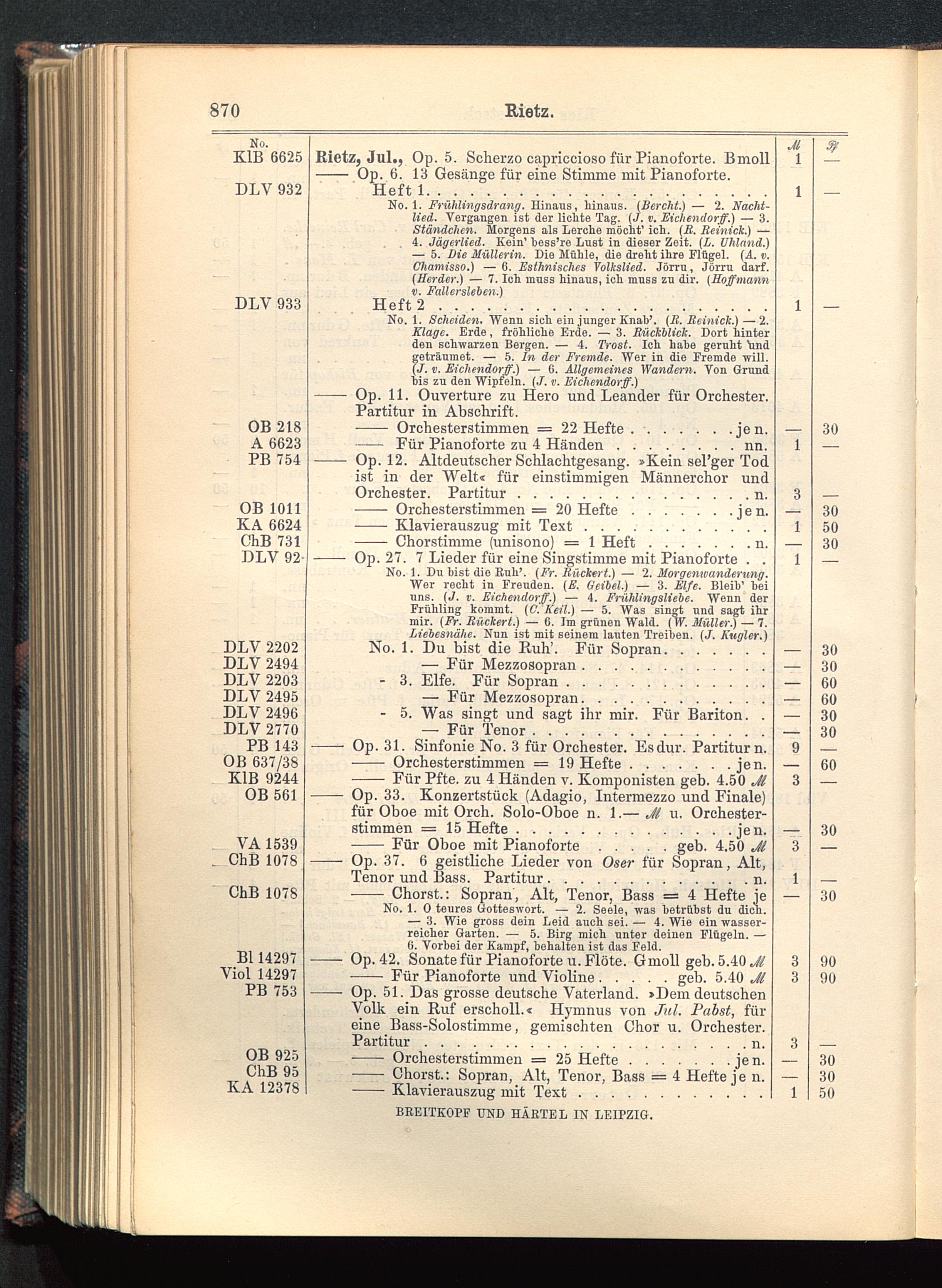 Verzeichnis des Musikalien-Verlages von Breitkopf & Härtel in Leipzig vollständig bis 1902