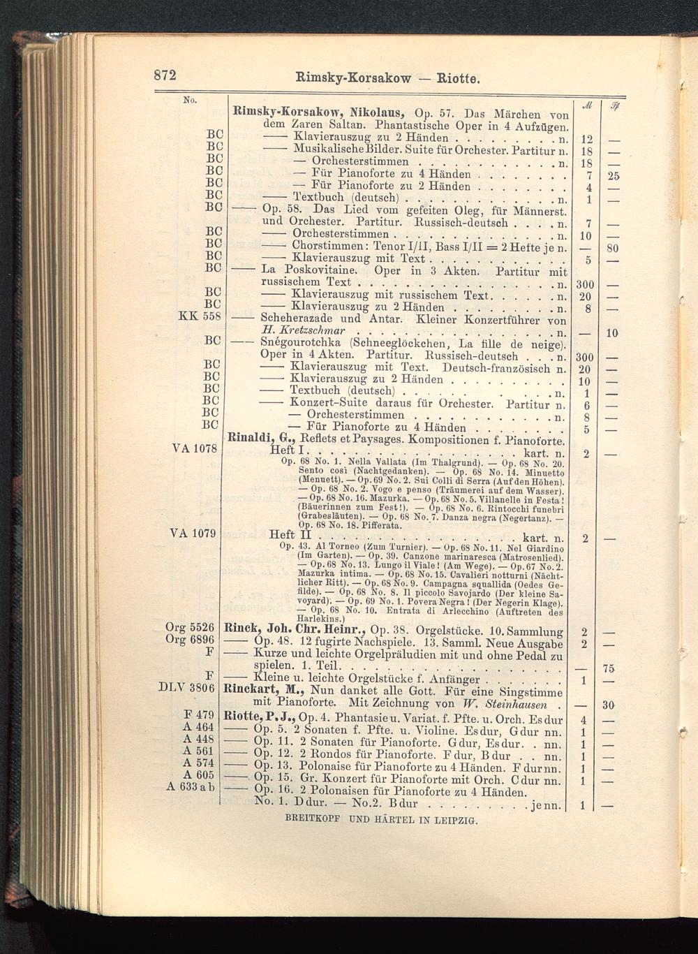 Verzeichnis des Musikalien-Verlages von Breitkopf & Härtel in Leipzig vollständig bis 1902