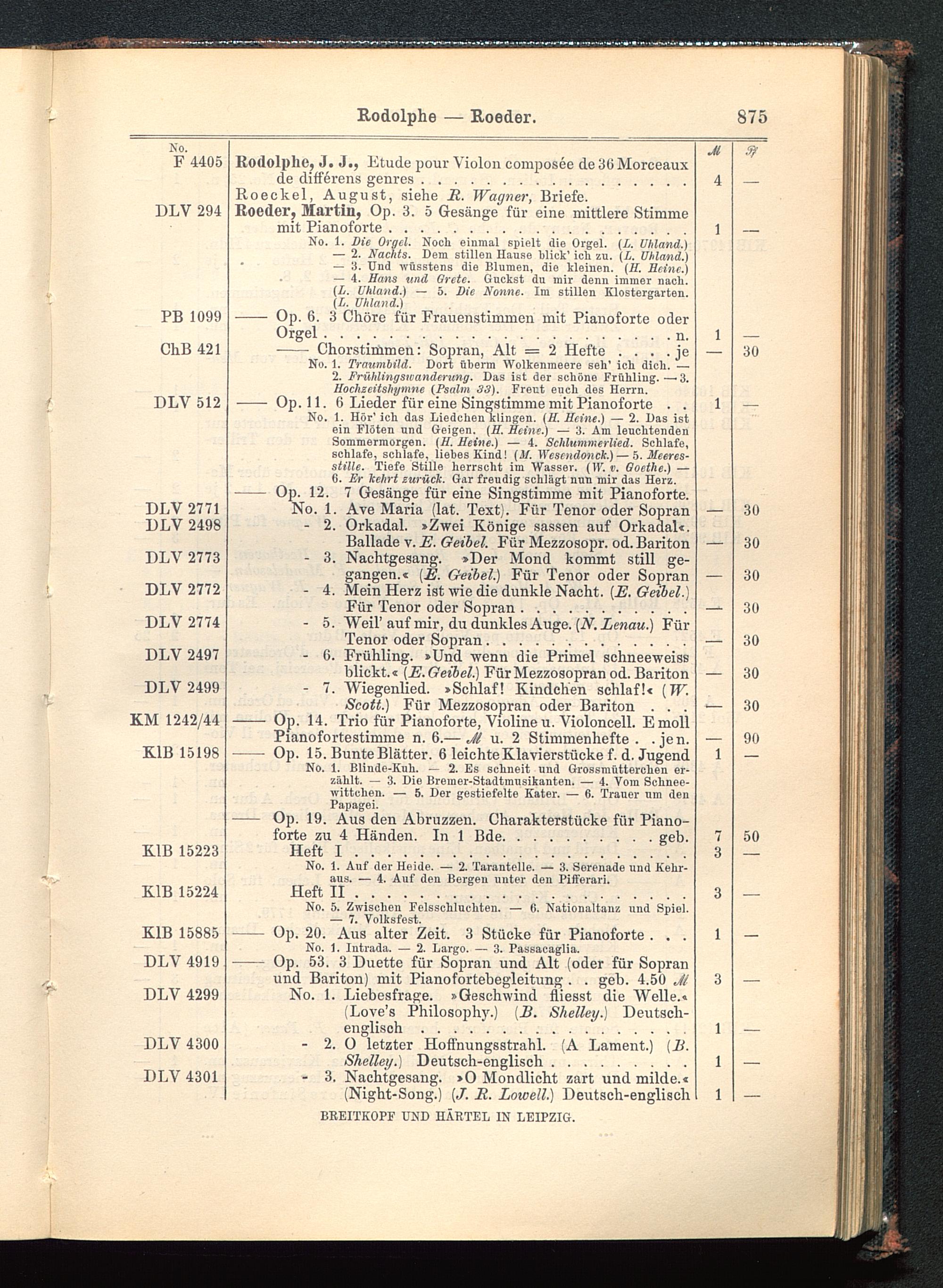 Verzeichnis des Musikalien-Verlages von Breitkopf & Härtel in Leipzig vollständig bis 1902