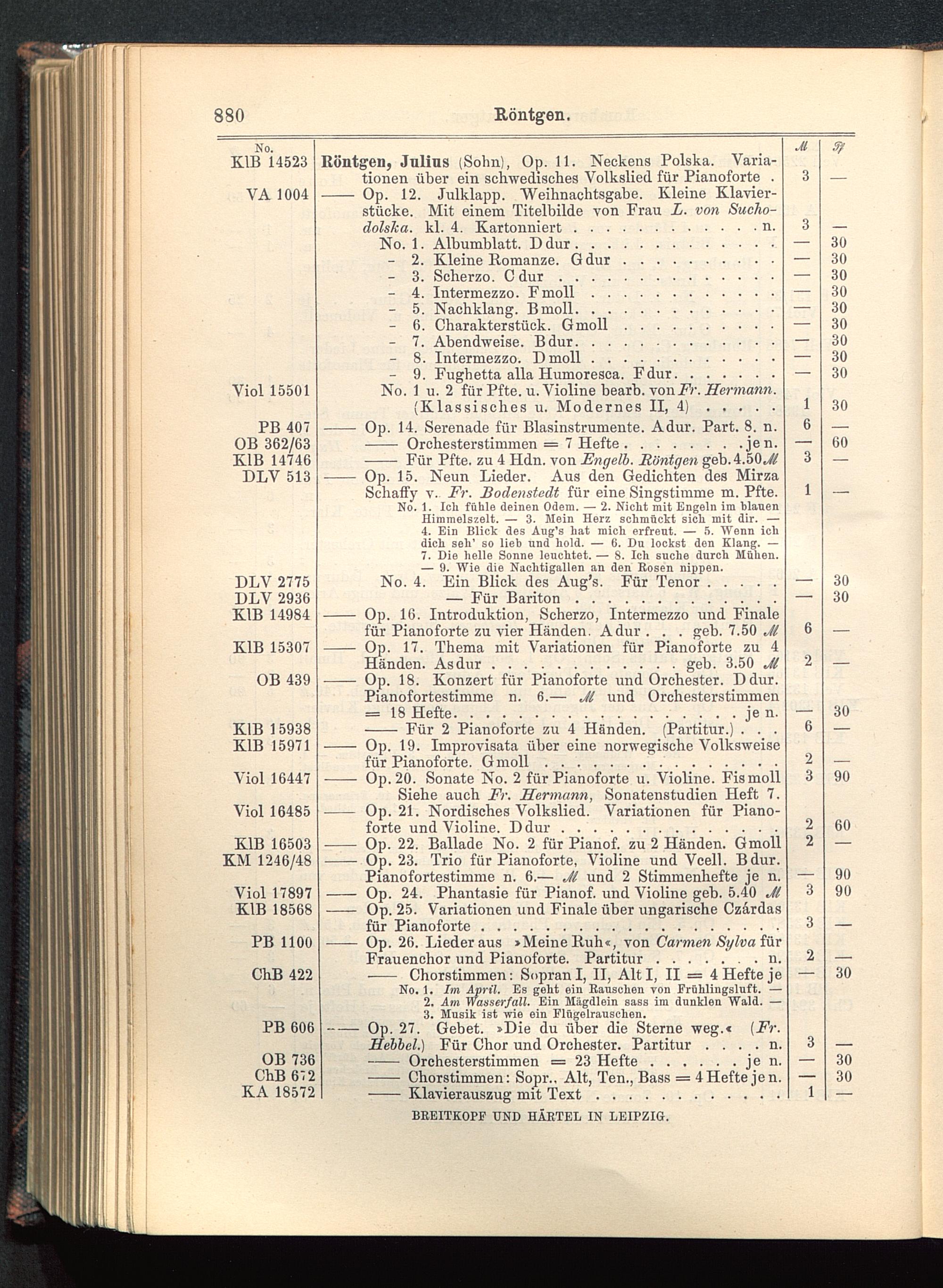 Verzeichnis des Musikalien-Verlages von Breitkopf & Härtel in Leipzig vollständig bis 1902