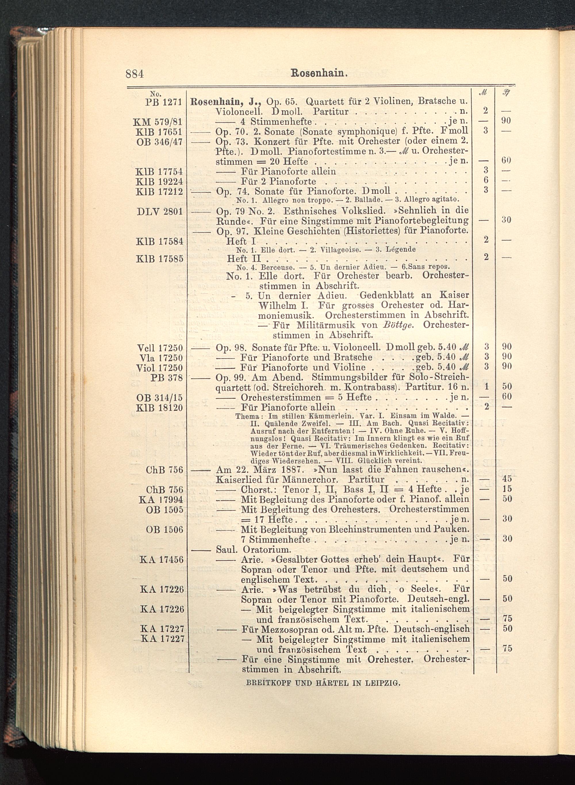 Verzeichnis des Musikalien-Verlages von Breitkopf & Härtel in Leipzig vollständig bis 1902