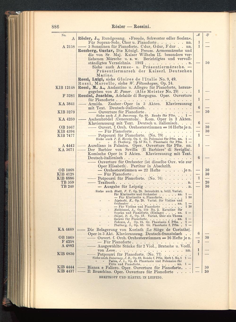 Verzeichnis des Musikalien-Verlages von Breitkopf & Härtel in Leipzig vollständig bis 1902