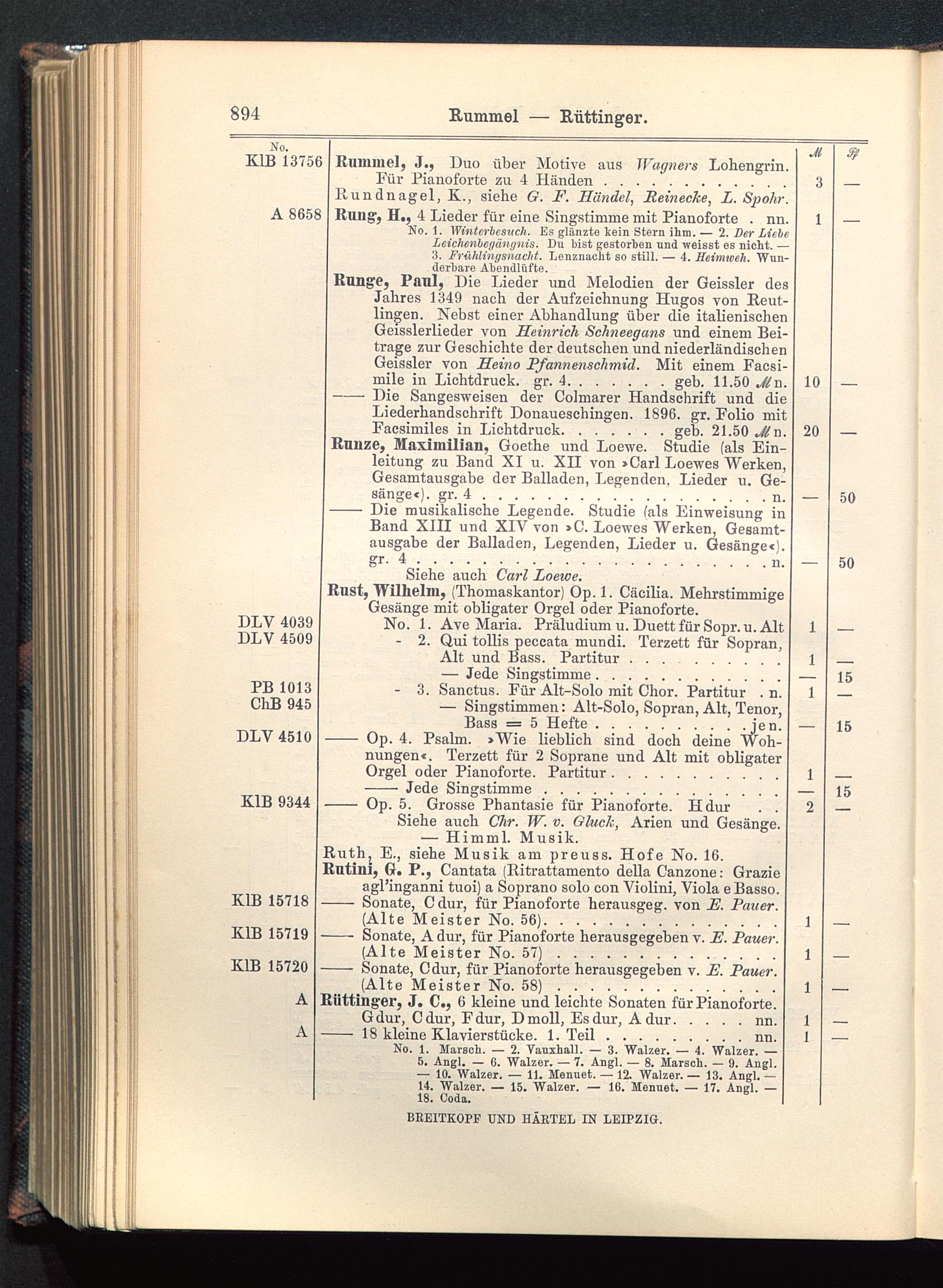 Verzeichnis des Musikalien-Verlages von Breitkopf & Härtel in Leipzig vollständig bis 1902