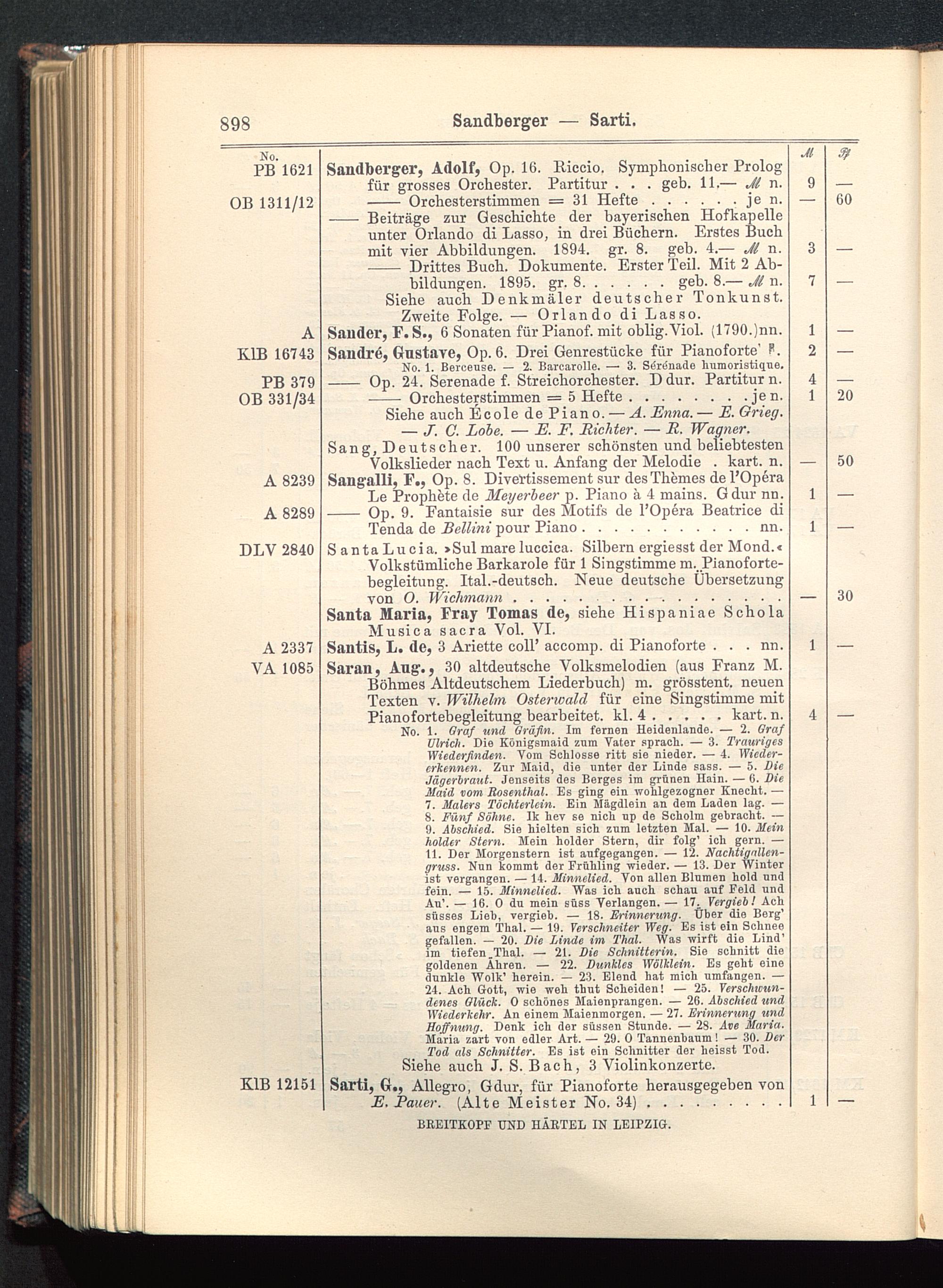 Verzeichnis des Musikalien-Verlages von Breitkopf & Härtel in Leipzig vollständig bis 1902