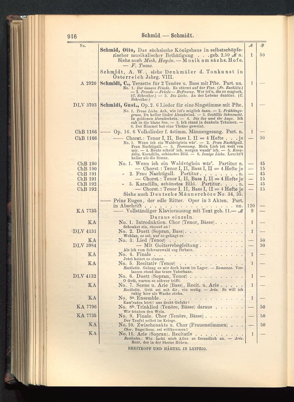Verzeichnis des Musikalien-Verlages von Breitkopf & Härtel in Leipzig vollständig bis 1902