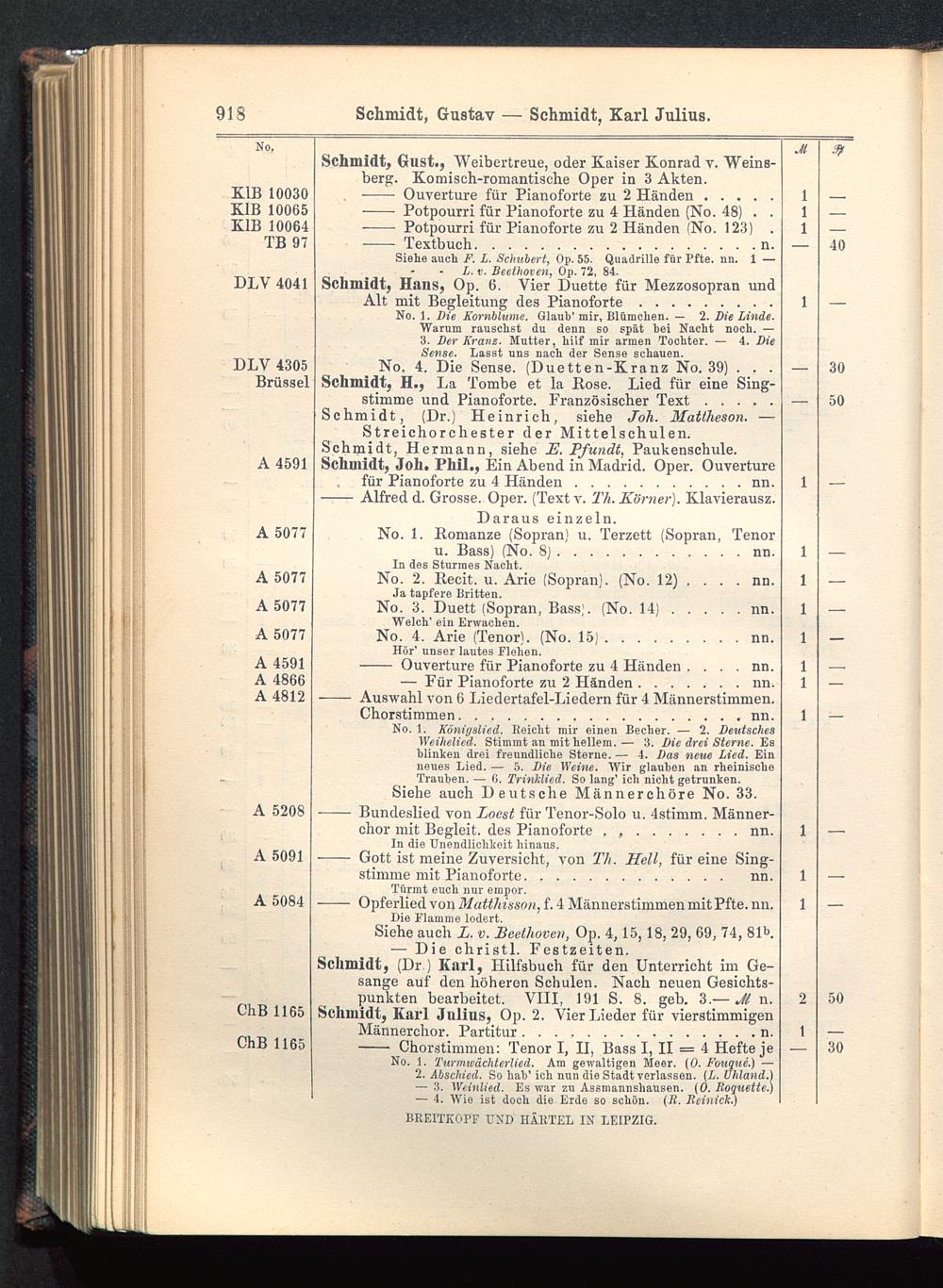 Verzeichnis des Musikalien-Verlages von Breitkopf & Härtel in Leipzig vollständig bis 1902