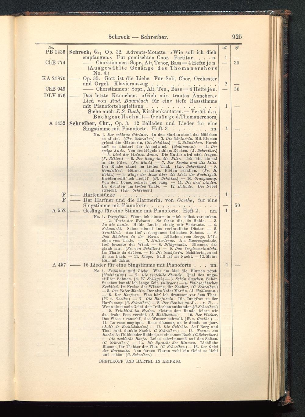 Verzeichnis des Musikalien-Verlages von Breitkopf & Härtel in Leipzig vollständig bis 1902