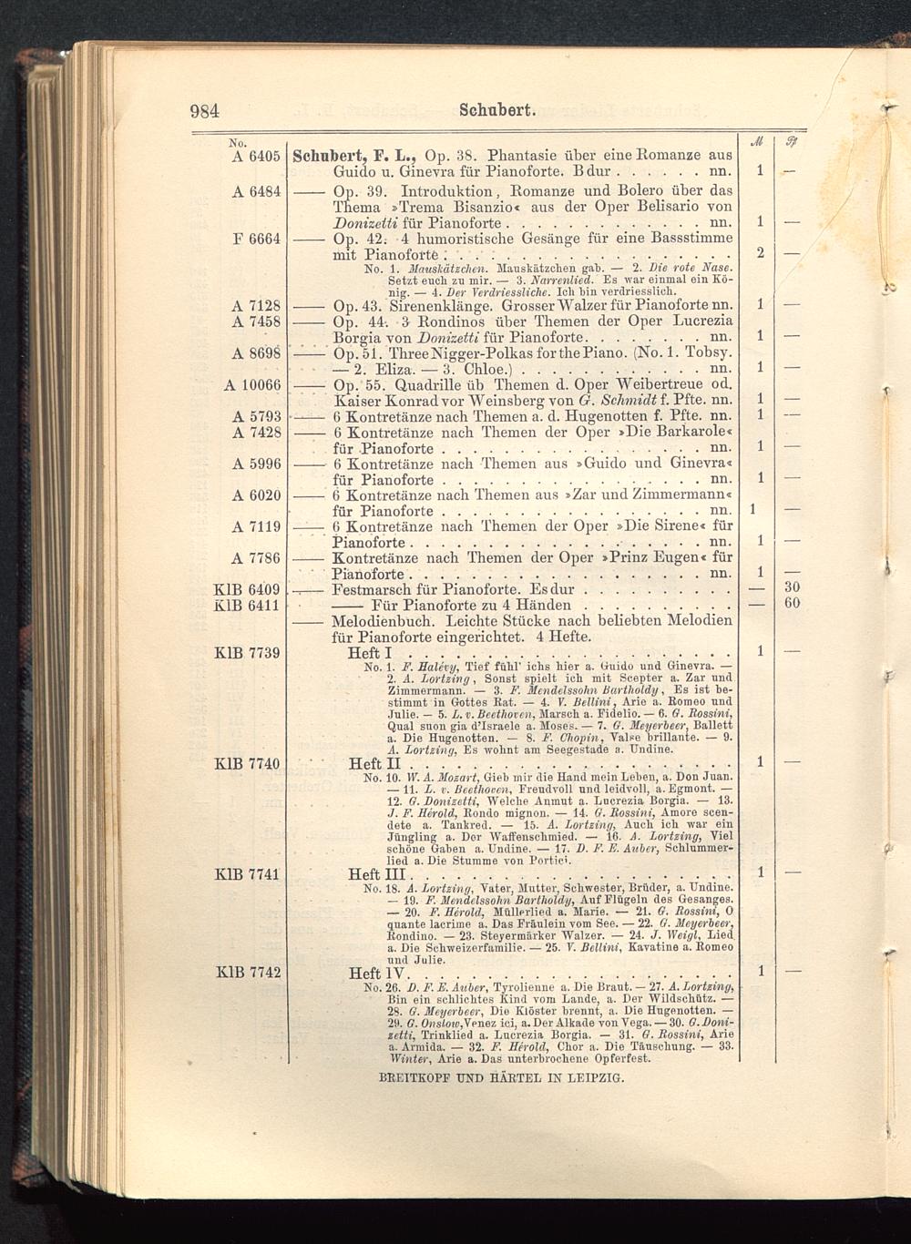 Verzeichnis des Musikalien-Verlages von Breitkopf & Härtel in Leipzig vollständig bis 1902