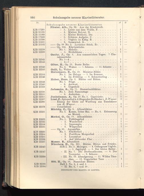 Verzeichnis des Musikalien-Verlages von Breitkopf & Härtel in Leipzig vollständig bis 1902