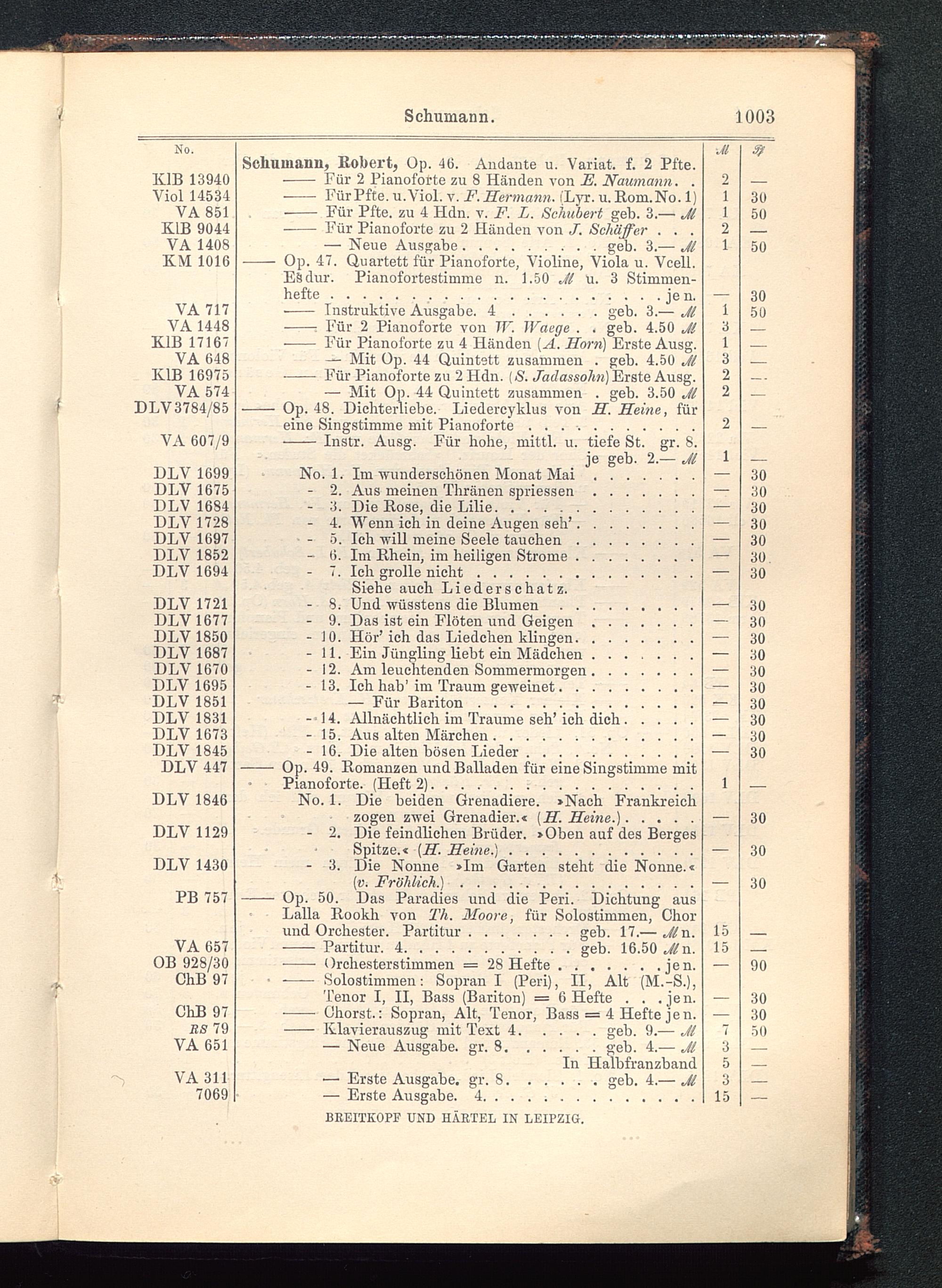 Verzeichnis des Musikalien-Verlages von Breitkopf & Härtel in Leipzig vollständig bis 1902