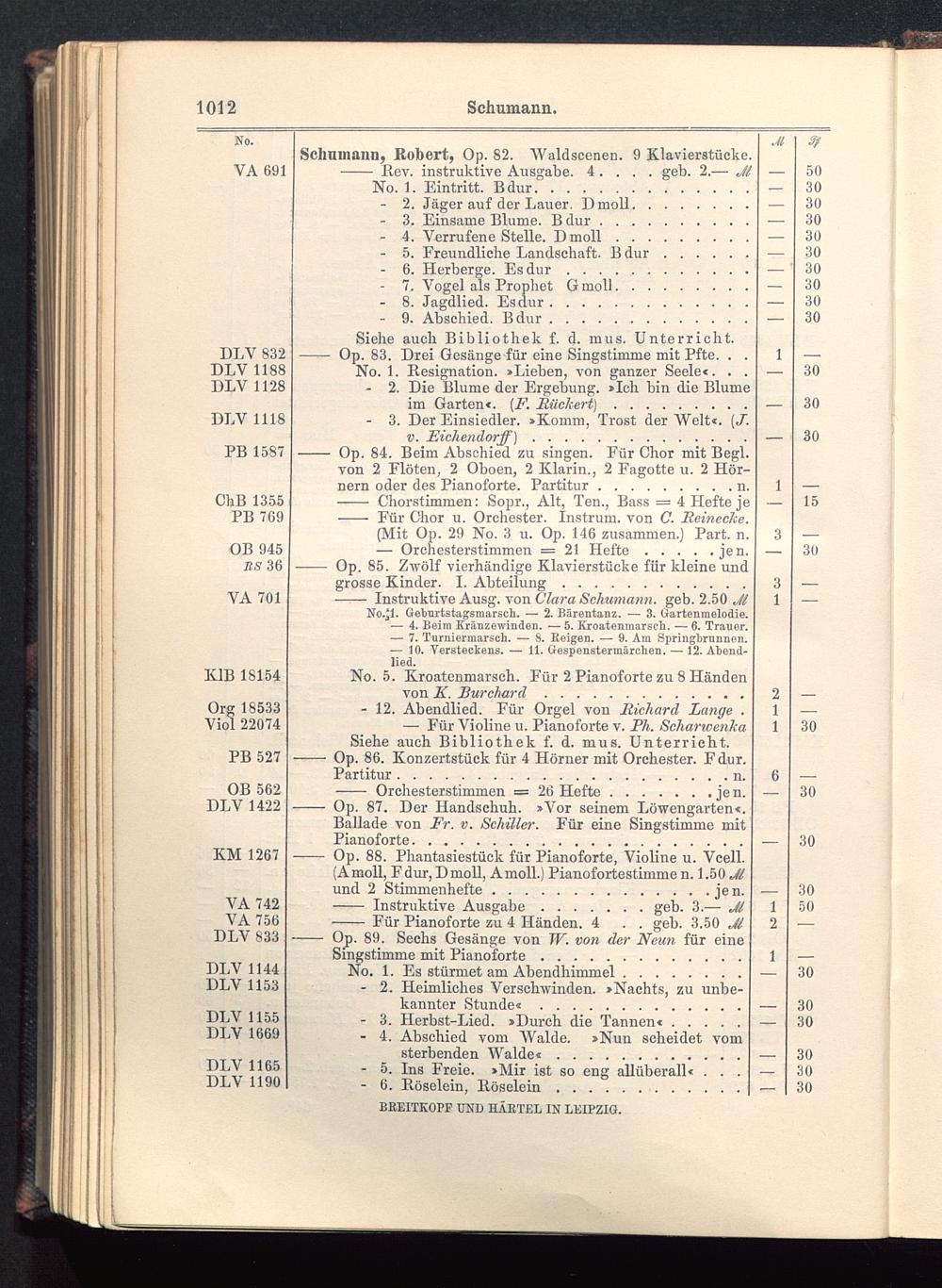 Verzeichnis des Musikalien-Verlages von Breitkopf & Härtel in Leipzig vollständig bis 1902