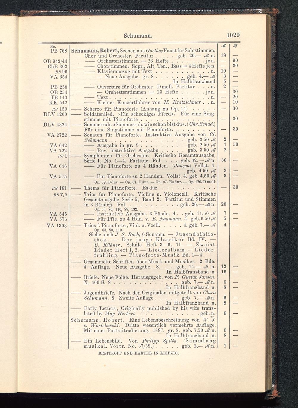 Verzeichnis des Musikalien-Verlages von Breitkopf & Härtel in Leipzig vollständig bis 1902