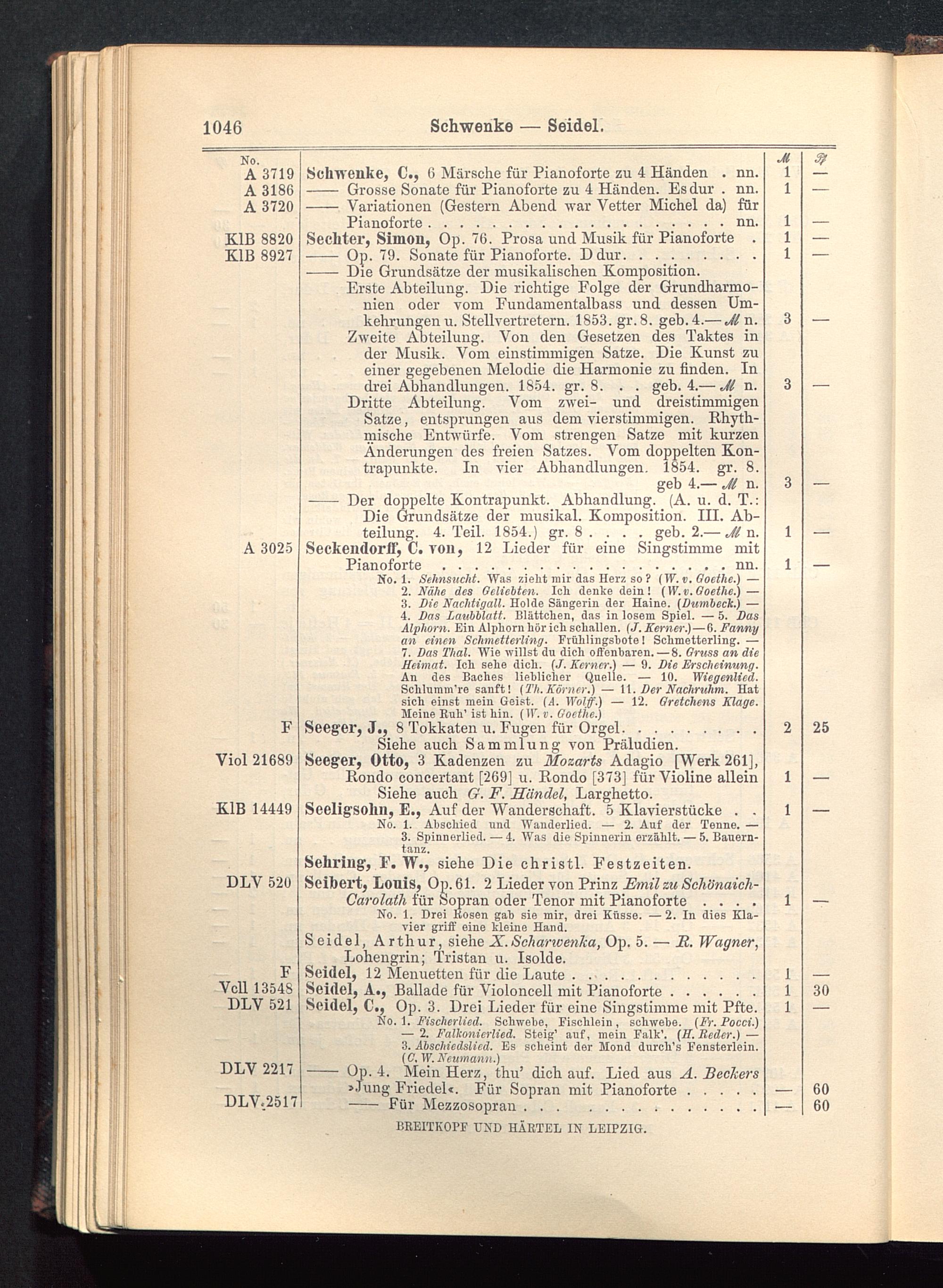 Verzeichnis des Musikalien-Verlages von Breitkopf & Härtel in Leipzig vollständig bis 1902