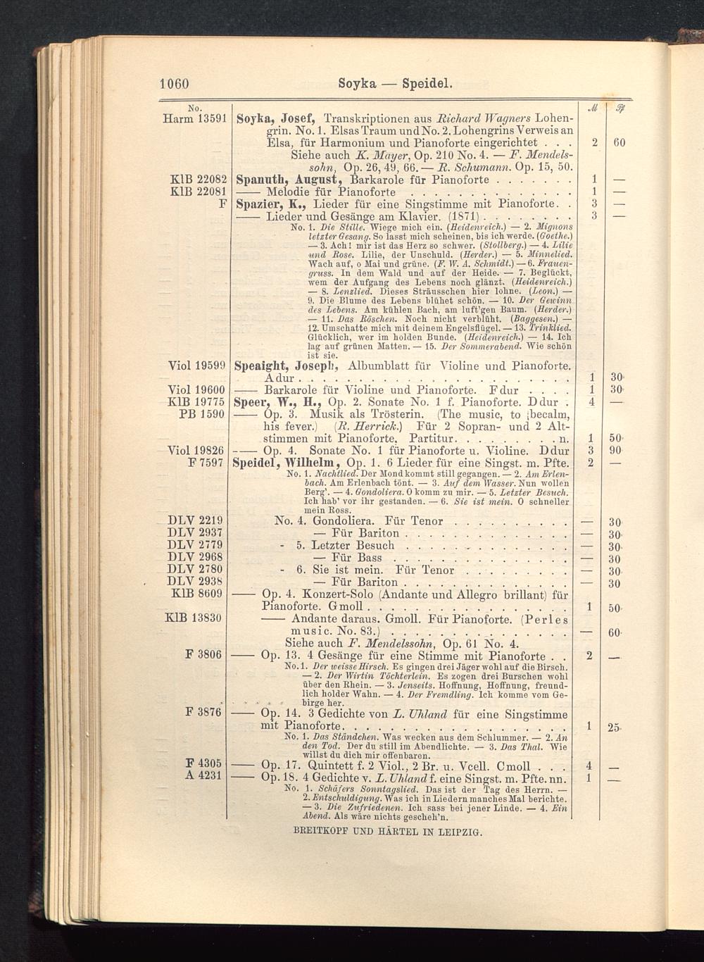 Verzeichnis des Musikalien-Verlages von Breitkopf & Härtel in Leipzig vollständig bis 1902