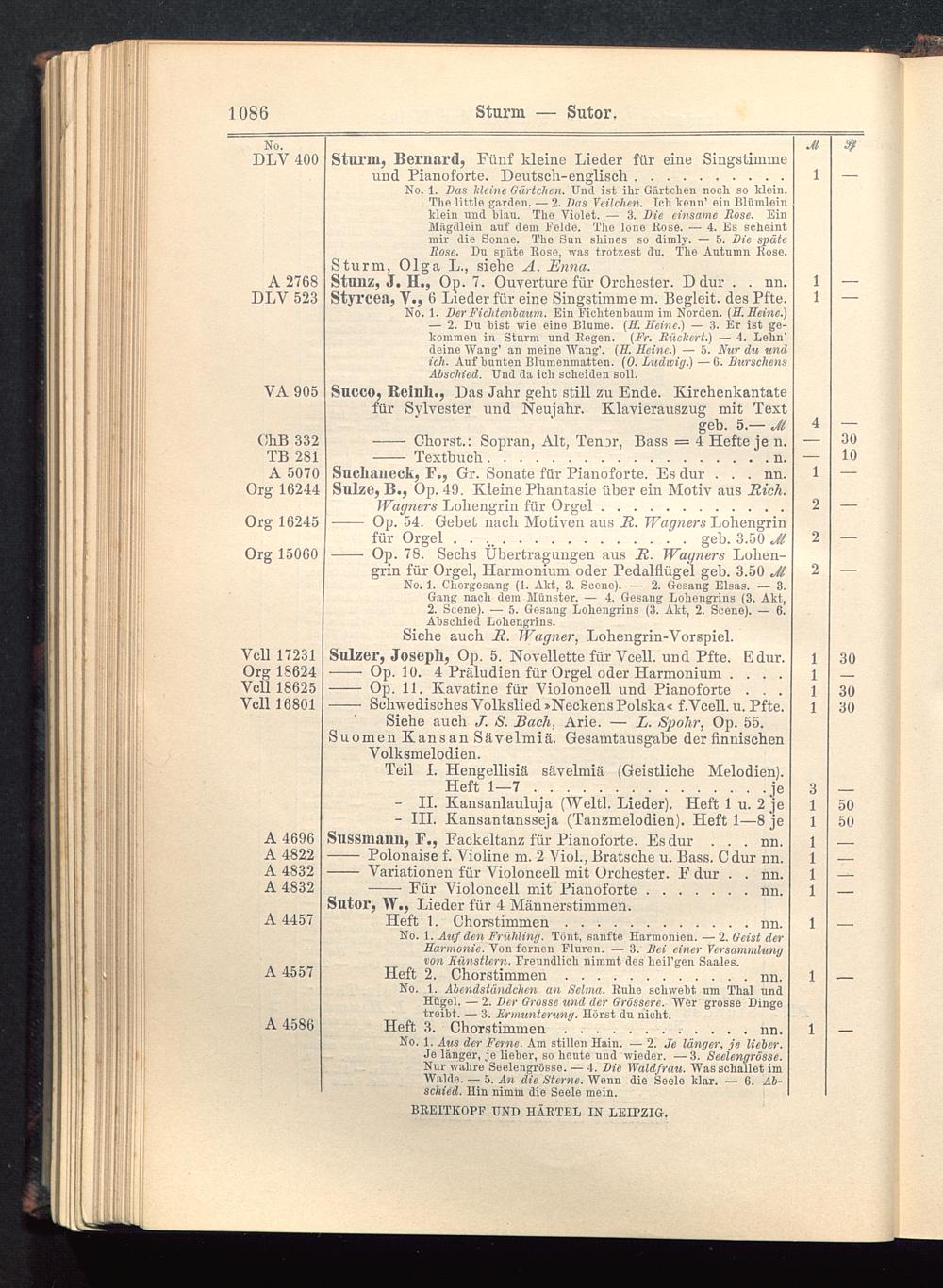 Verzeichnis des Musikalien-Verlages von Breitkopf & Härtel in Leipzig vollständig bis 1902