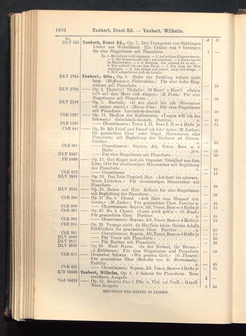 Verzeichnis des Musikalien-Verlages von Breitkopf & Härtel in Leipzig vollständig bis 1902