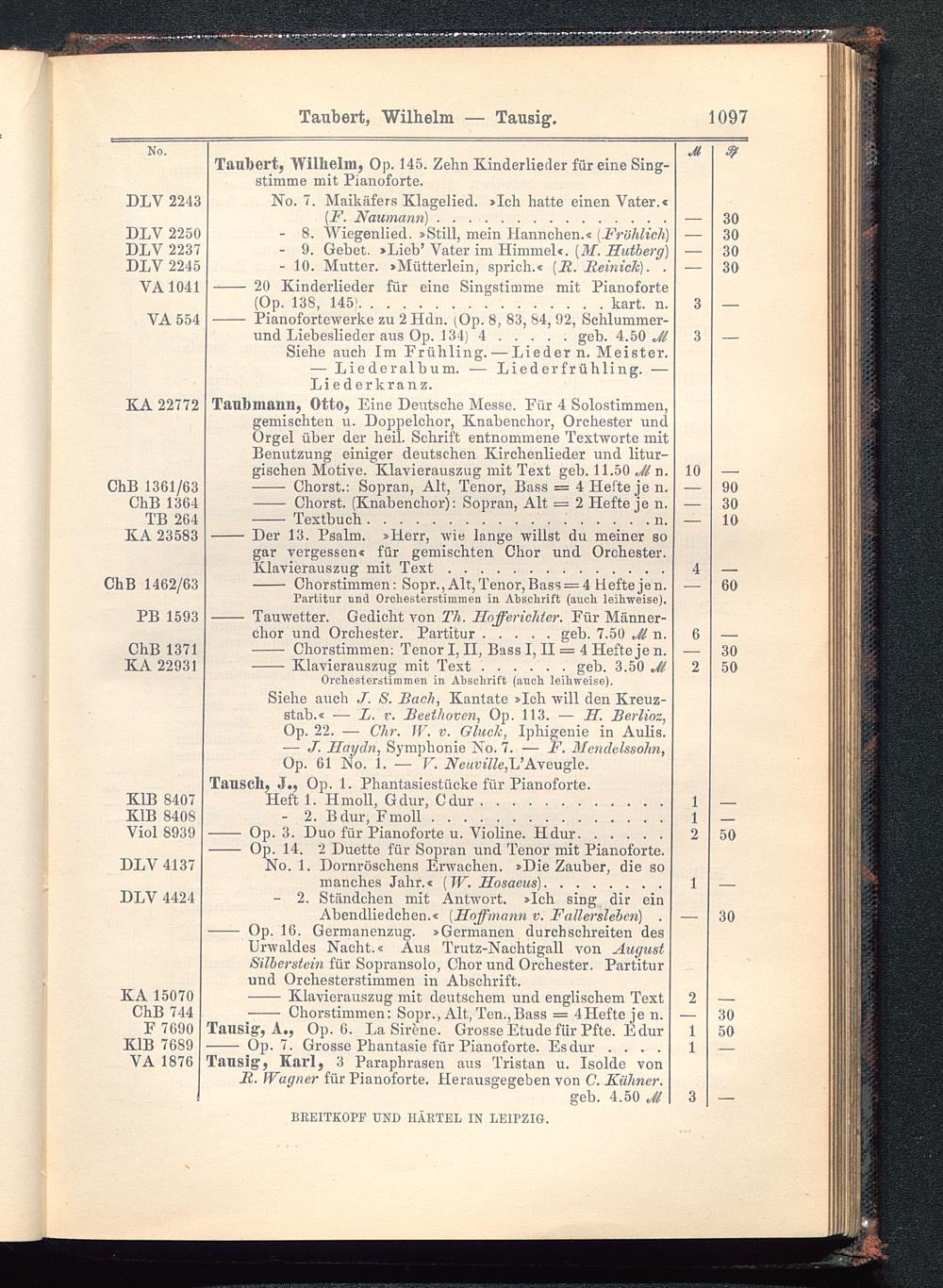 Verzeichnis des Musikalien-Verlages von Breitkopf & Härtel in Leipzig vollständig bis 1902