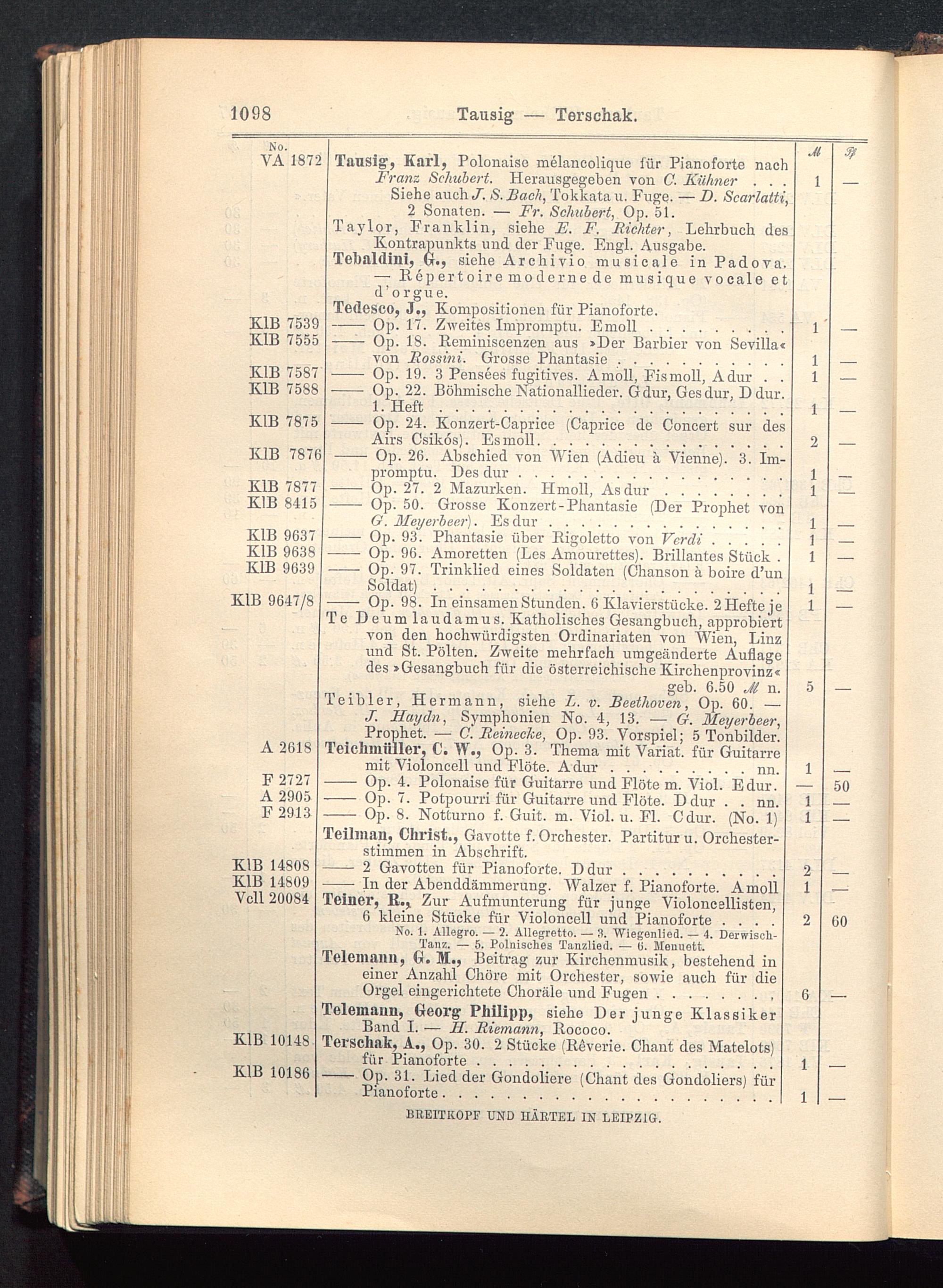Verzeichnis des Musikalien-Verlages von Breitkopf & Härtel in Leipzig vollständig bis 1902