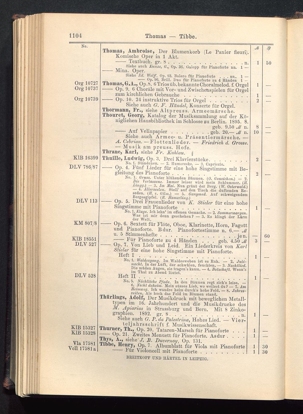 Verzeichnis des Musikalien-Verlages von Breitkopf & Härtel in Leipzig vollständig bis 1902