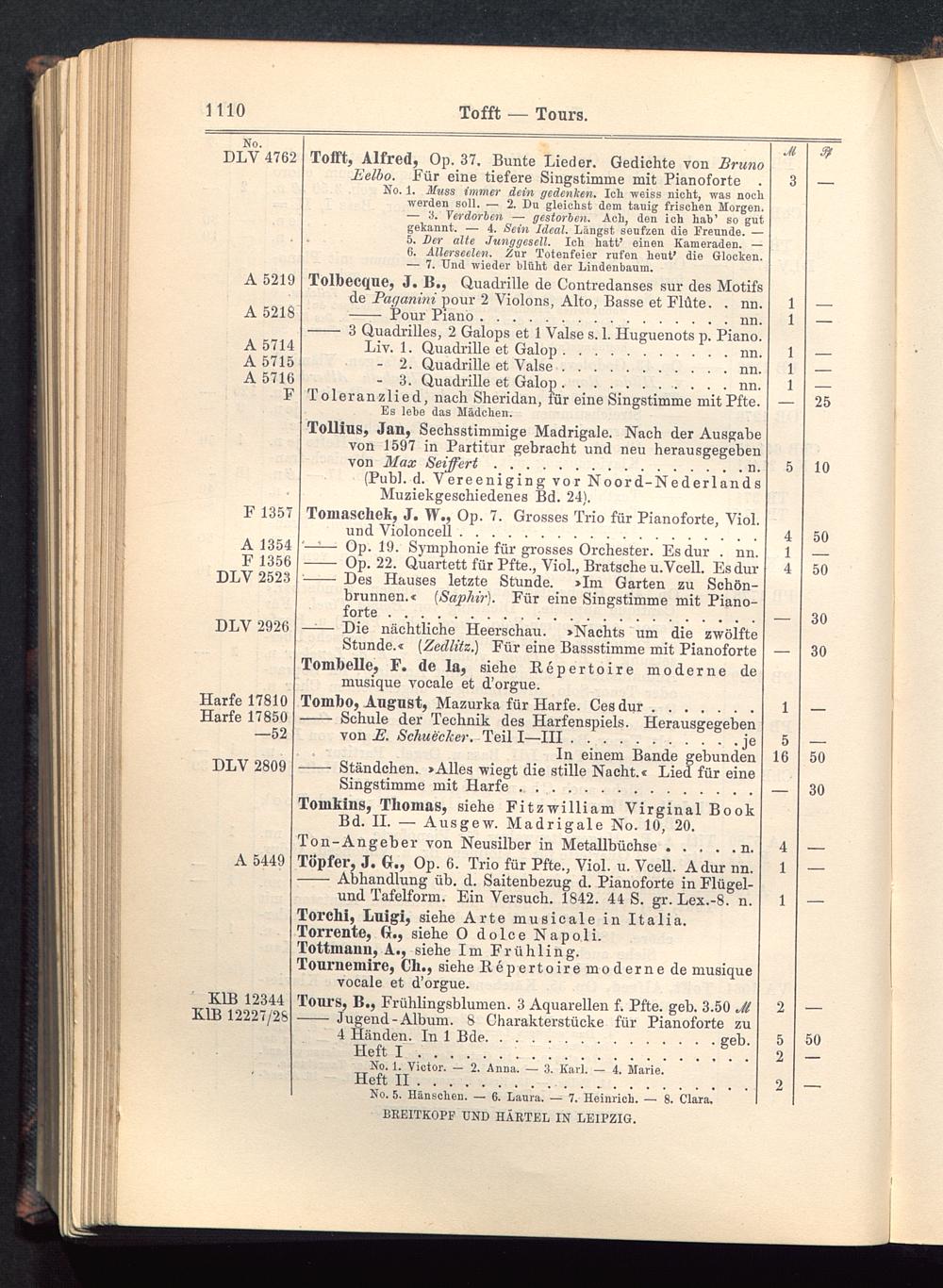 Verzeichnis des Musikalien-Verlages von Breitkopf & Härtel in Leipzig vollständig bis 1902