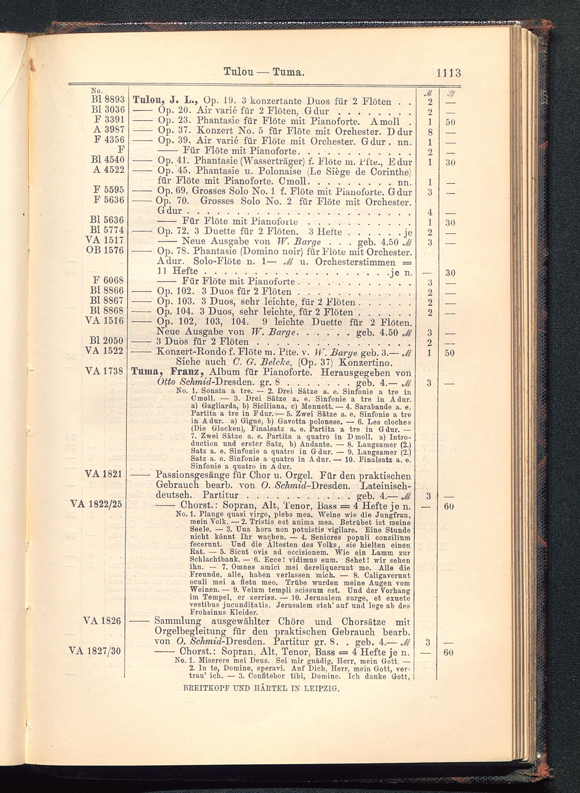 Verzeichnis des Musikalien-Verlages von Breitkopf & Härtel in Leipzig vollständig bis 1902