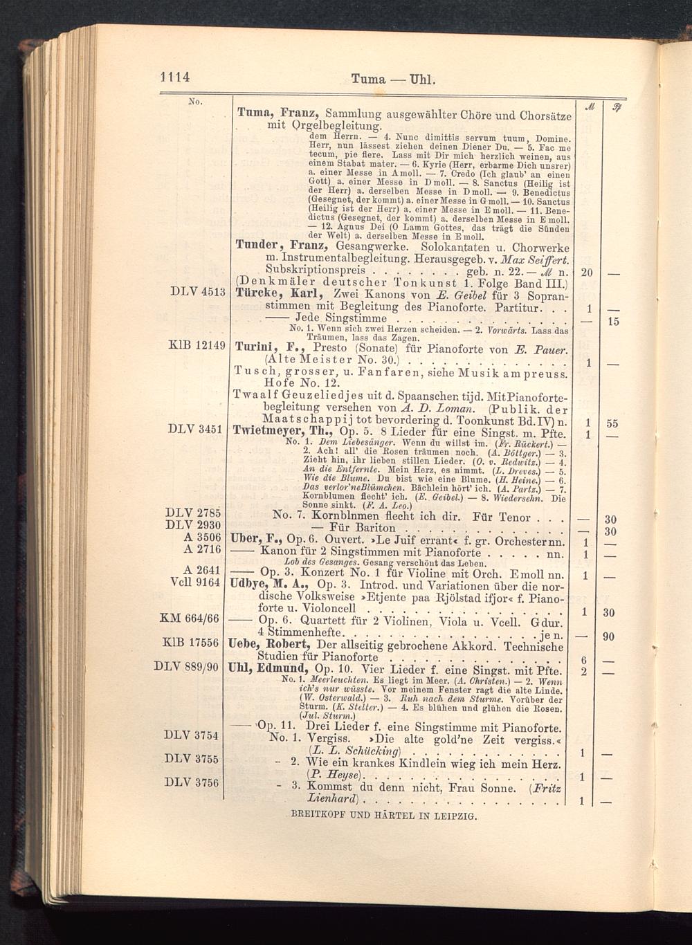 Verzeichnis des Musikalien-Verlages von Breitkopf & Härtel in Leipzig vollständig bis 1902
