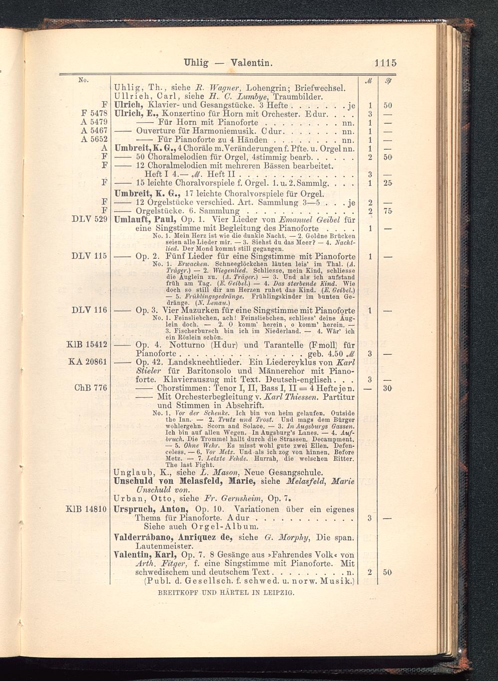 Verzeichnis des Musikalien-Verlages von Breitkopf & Härtel in Leipzig vollständig bis 1902