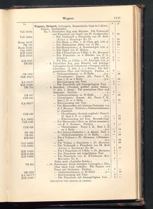 Verzeichnis des Musikalien-Verlages von Breitkopf & Härtel in Leipzig vollständig bis 1902