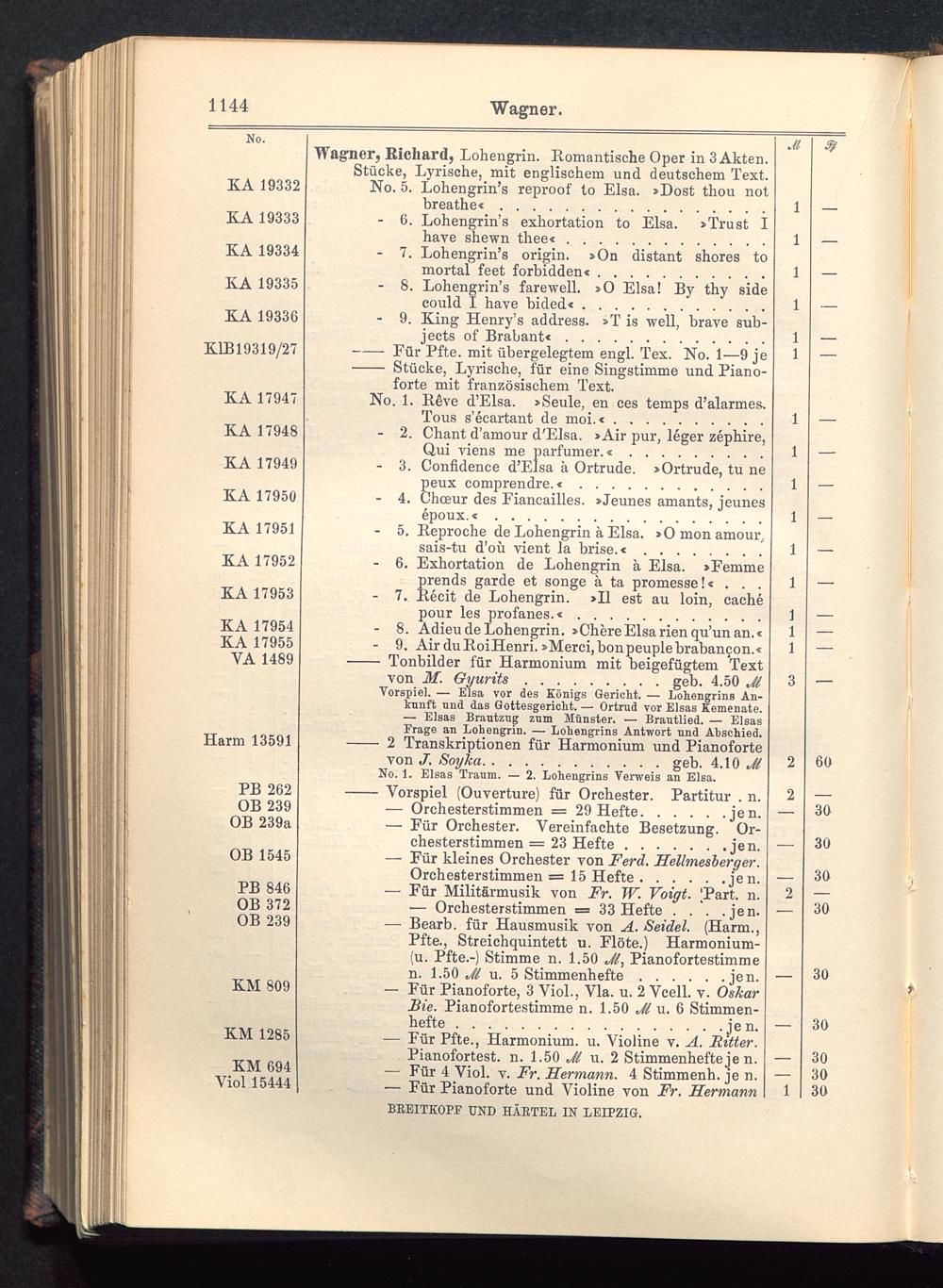 Verzeichnis des Musikalien-Verlages von Breitkopf & Härtel in Leipzig vollständig bis 1902