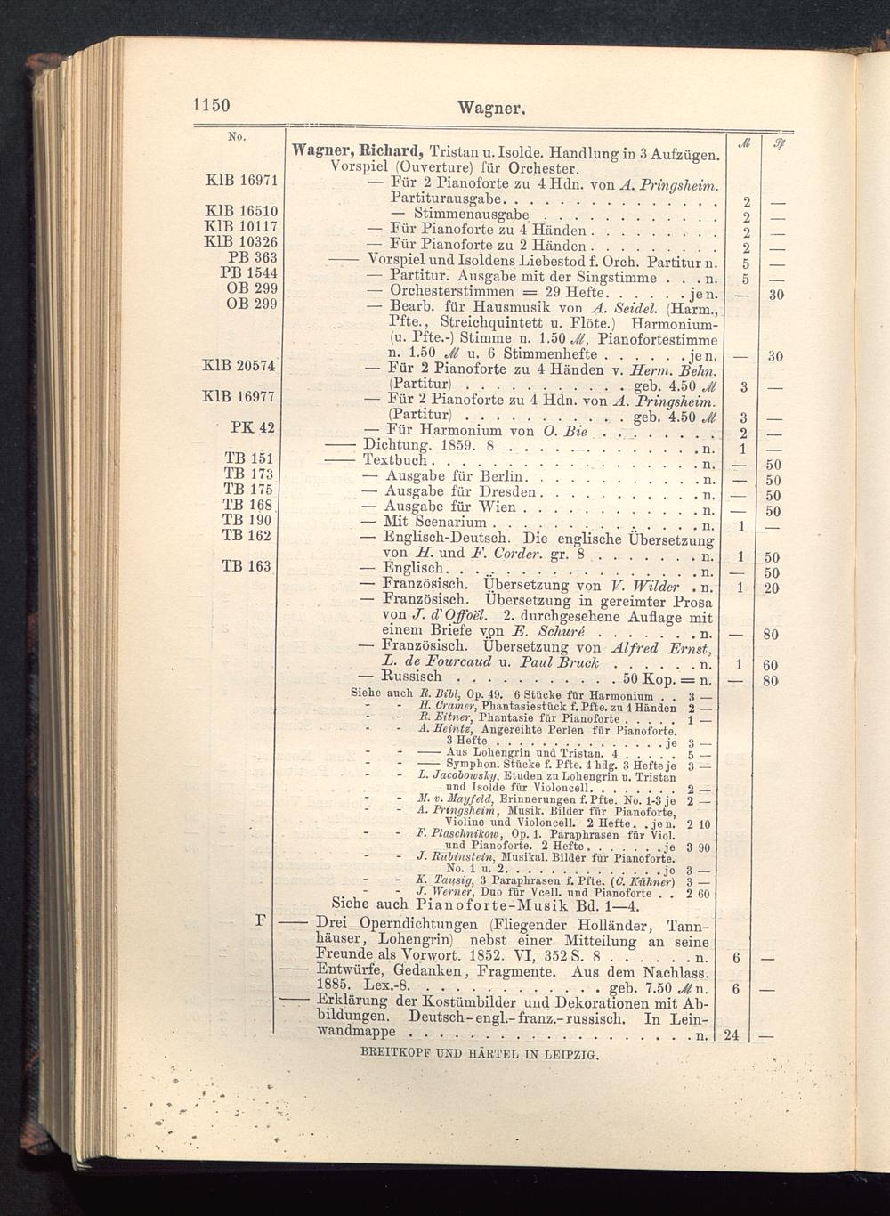 Verzeichnis des Musikalien-Verlages von Breitkopf & Härtel in Leipzig vollständig bis 1902