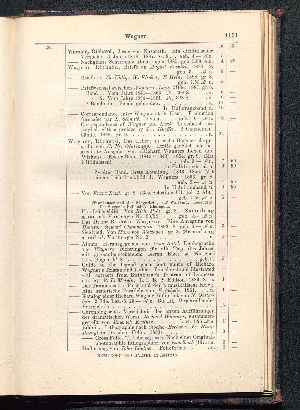 Verzeichnis des Musikalien-Verlages von Breitkopf & Härtel in Leipzig vollständig bis 1902