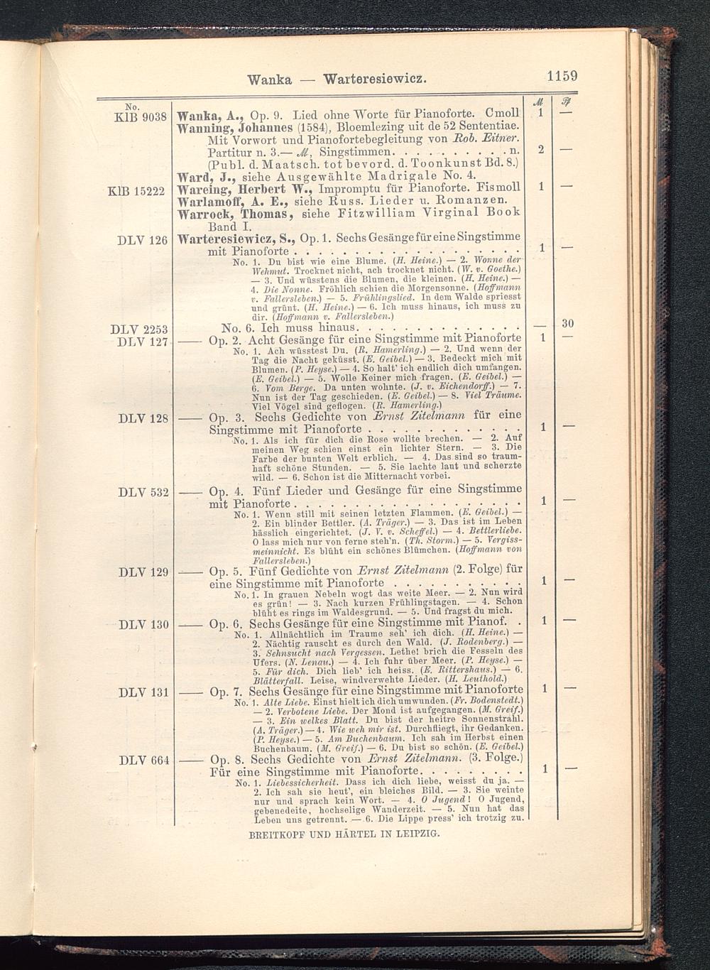 Verzeichnis des Musikalien-Verlages von Breitkopf & Härtel in Leipzig vollständig bis 1902