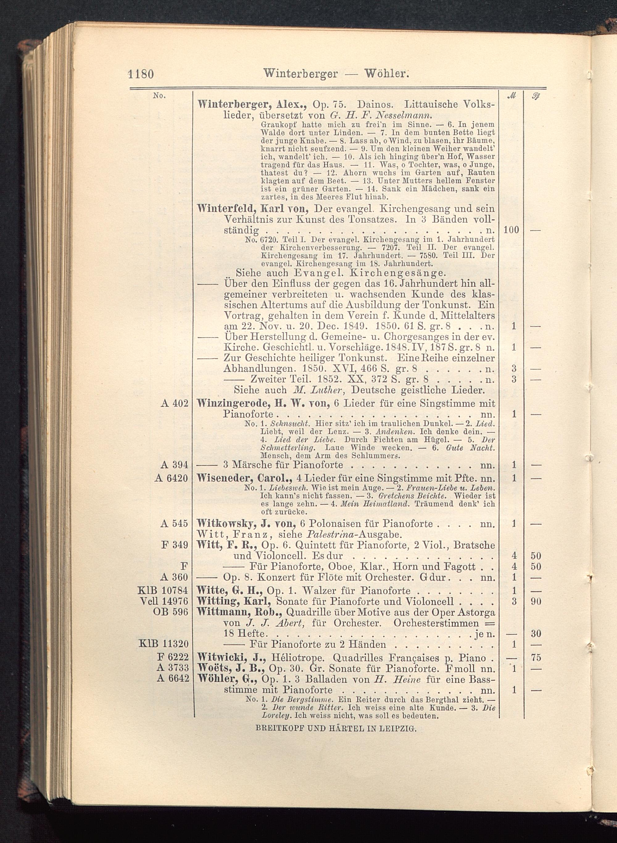 Verzeichnis des Musikalien-Verlages von Breitkopf & Härtel in Leipzig vollständig bis 1902