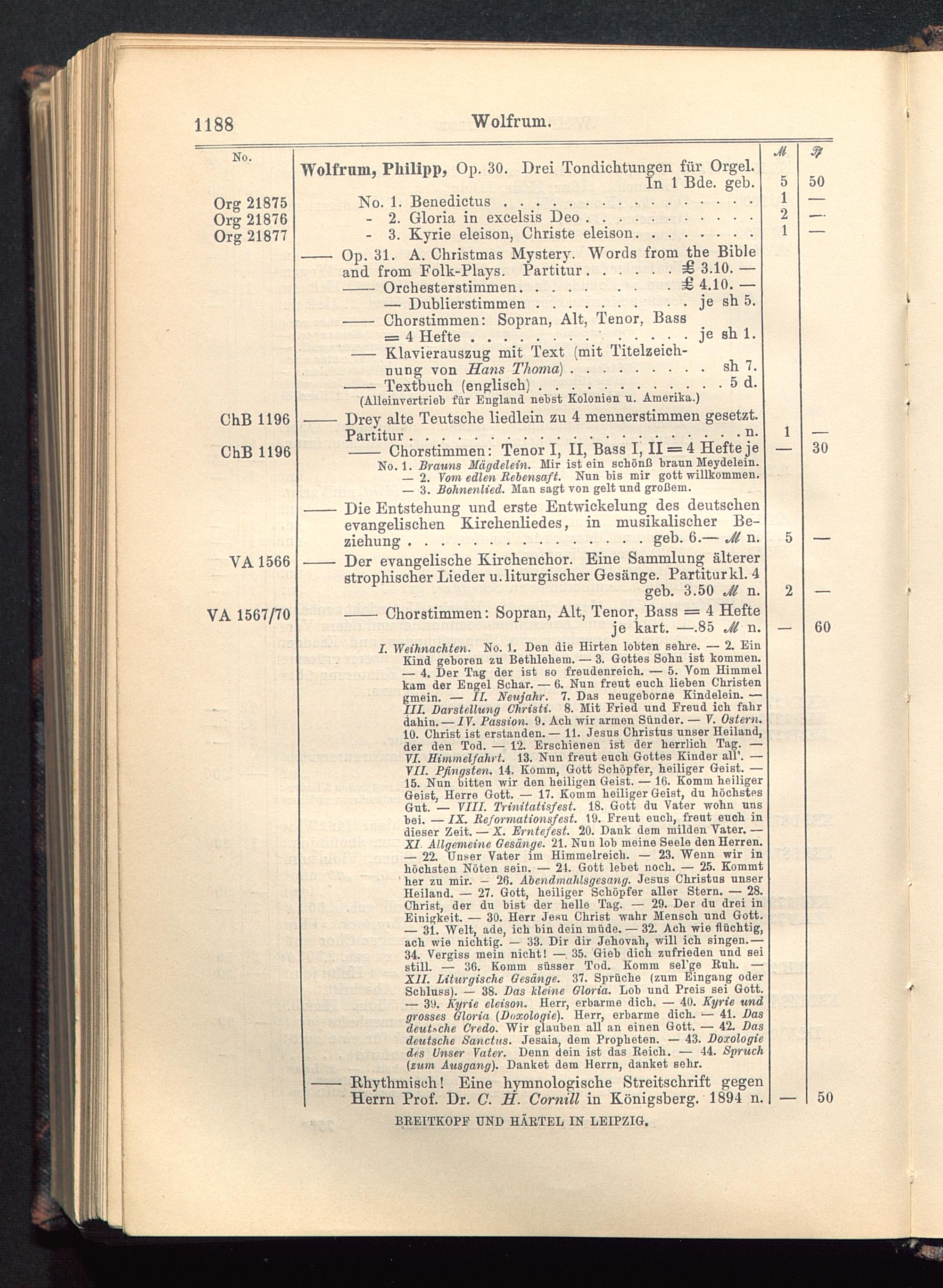 Verzeichnis des Musikalien-Verlages von Breitkopf & Härtel in Leipzig vollständig bis 1902