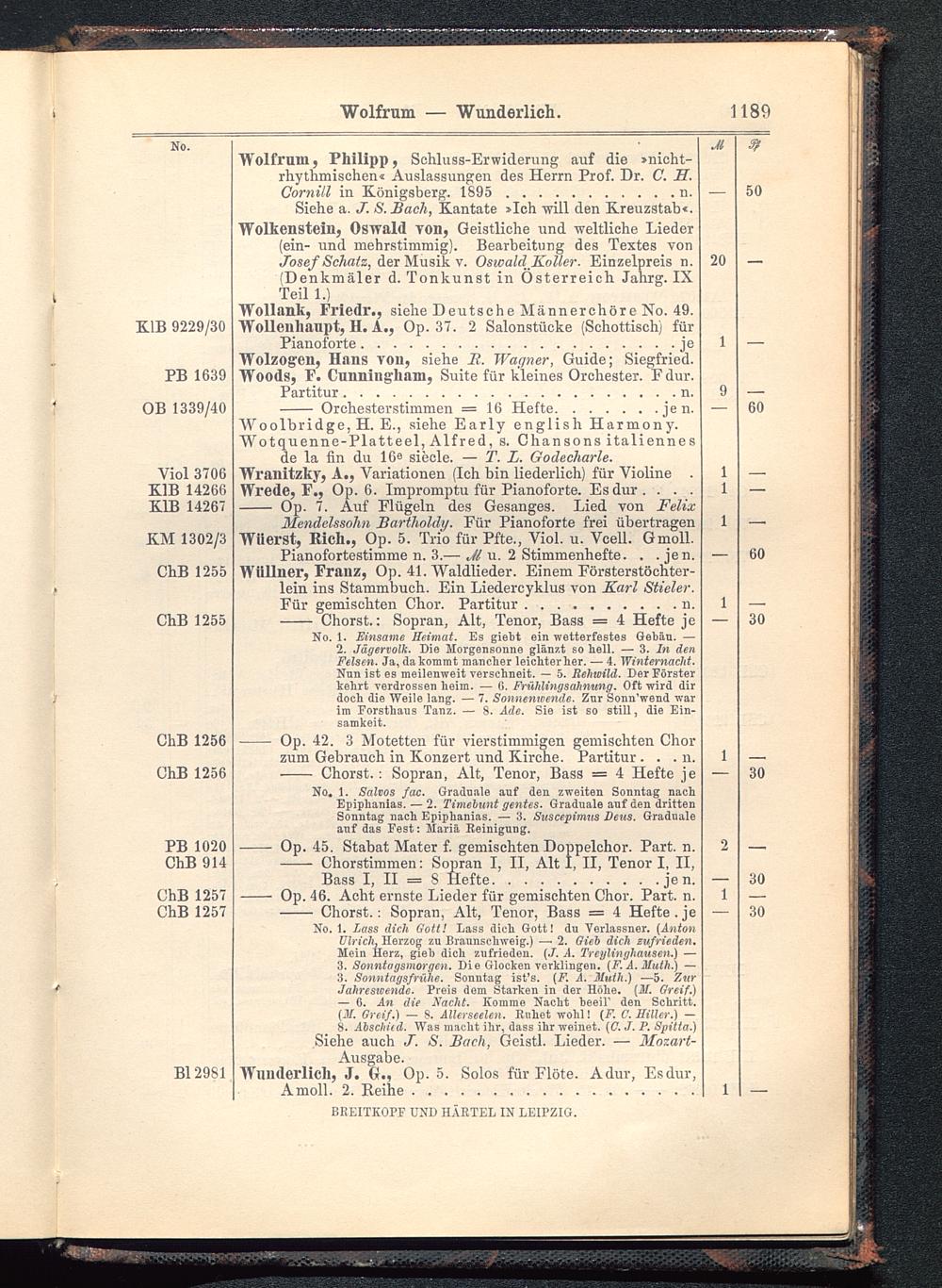 Verzeichnis des Musikalien-Verlages von Breitkopf & Härtel in Leipzig vollständig bis 1902