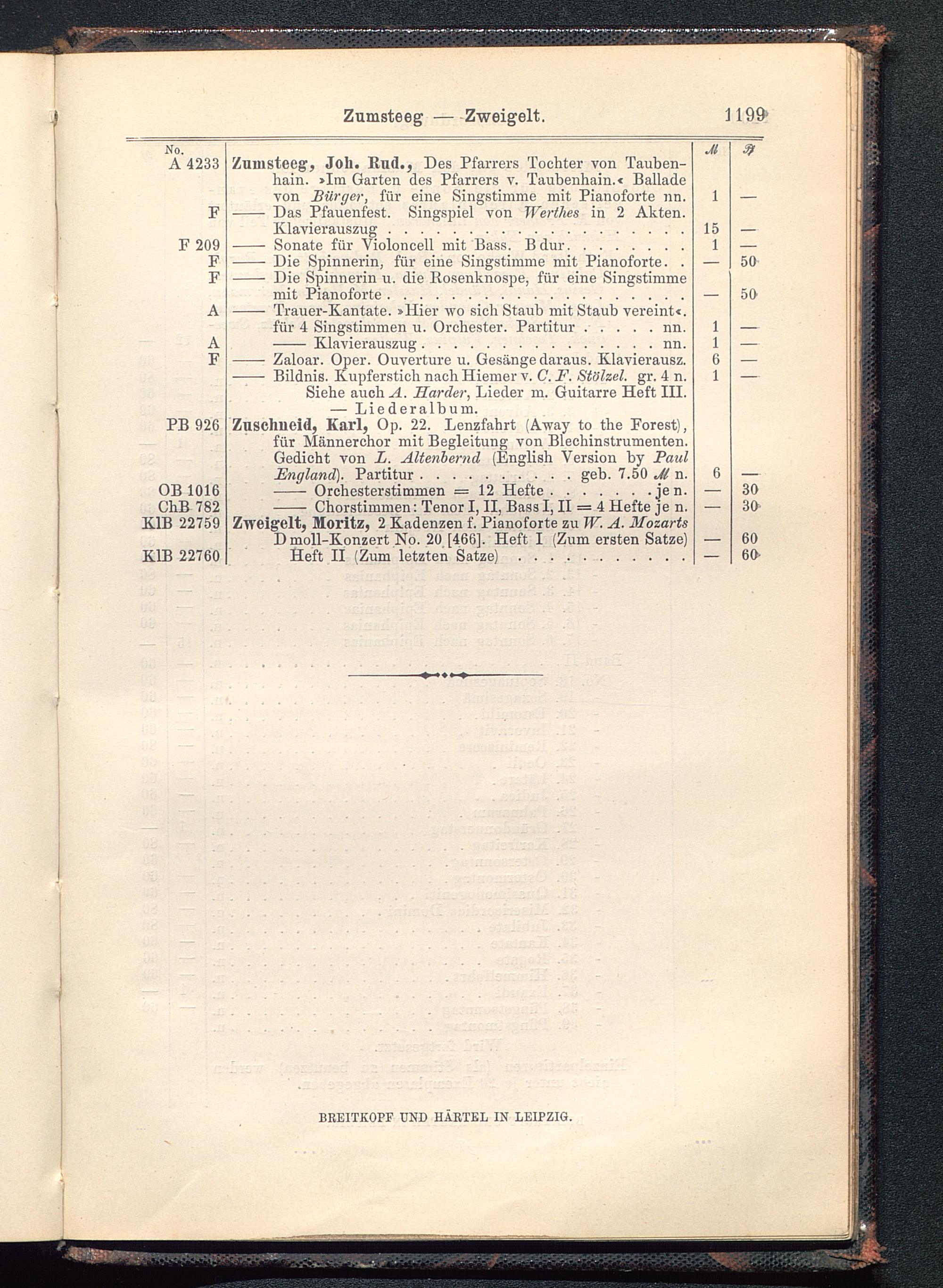 Verzeichnis des Musikalien-Verlages von Breitkopf & Härtel in Leipzig vollständig bis 1902