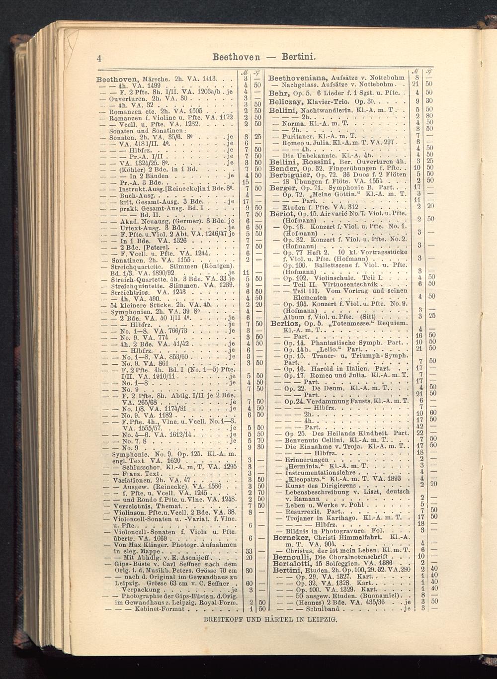 Verzeichnis des Musikalien-Verlages von Breitkopf & Härtel in Leipzig vollständig bis 1902