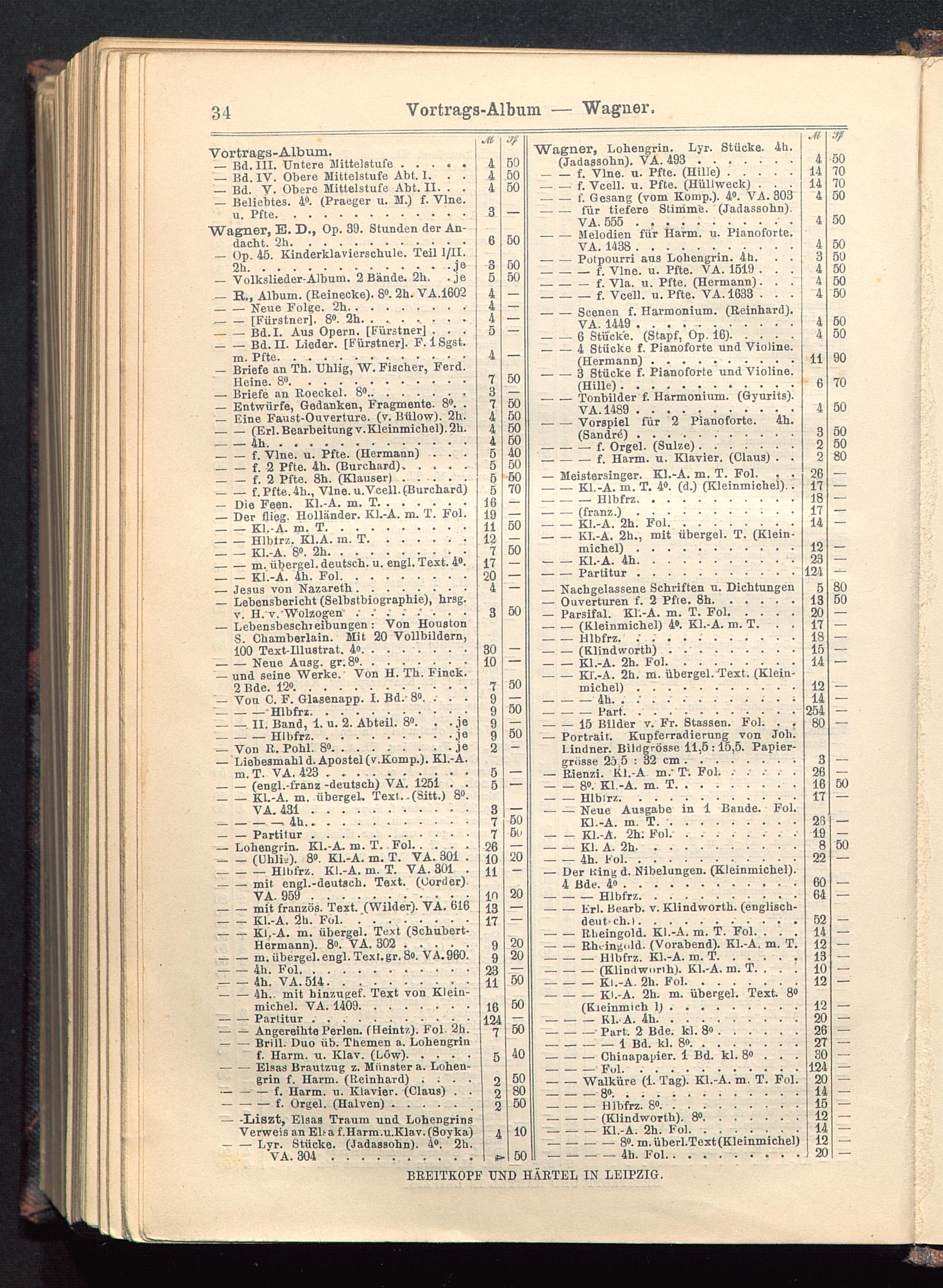 Verzeichnis des Musikalien-Verlages von Breitkopf & Härtel in Leipzig vollständig bis 1902