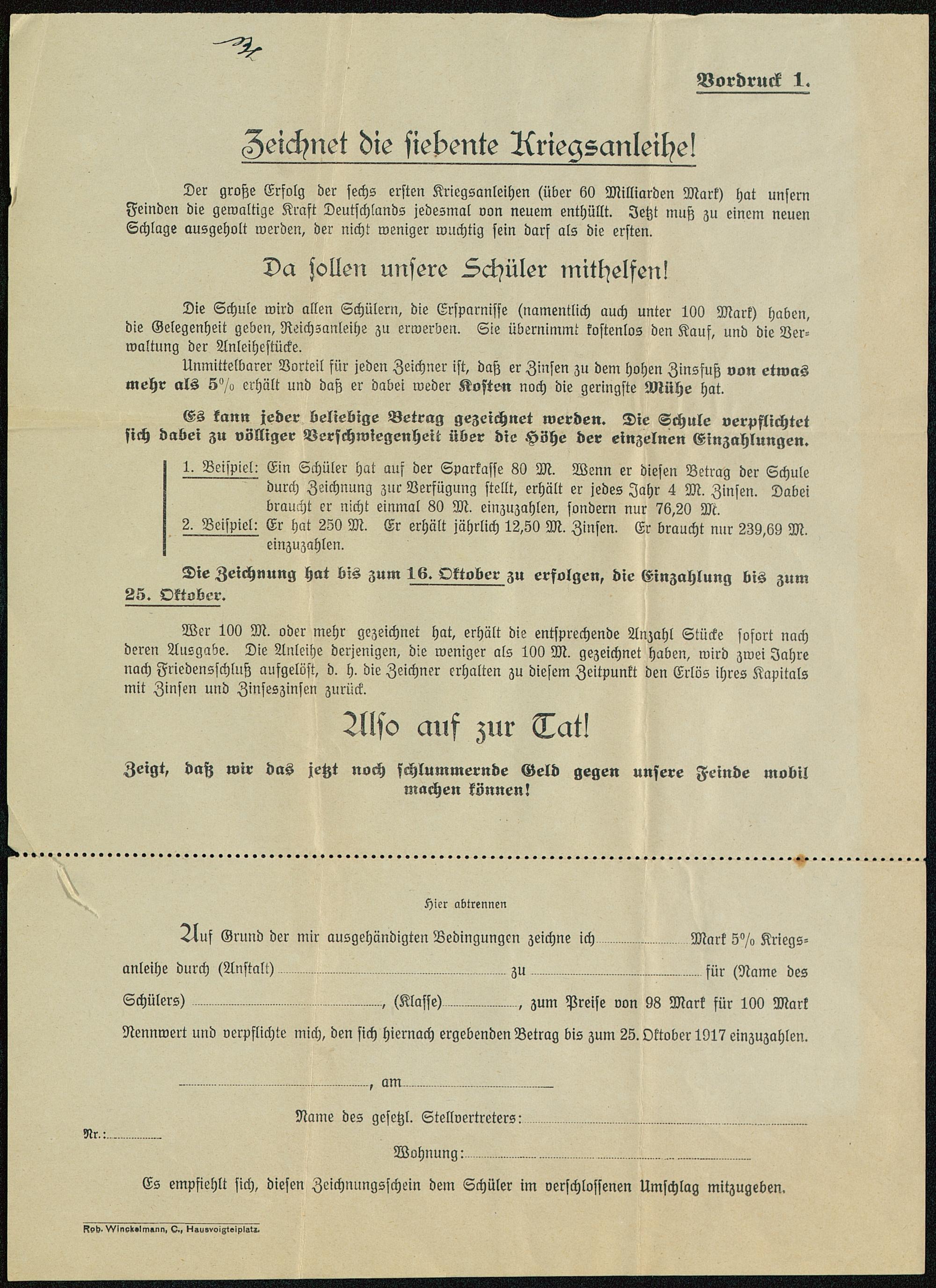 Zeichnet die siebente Kriegsanleihe! : Vordruck 1