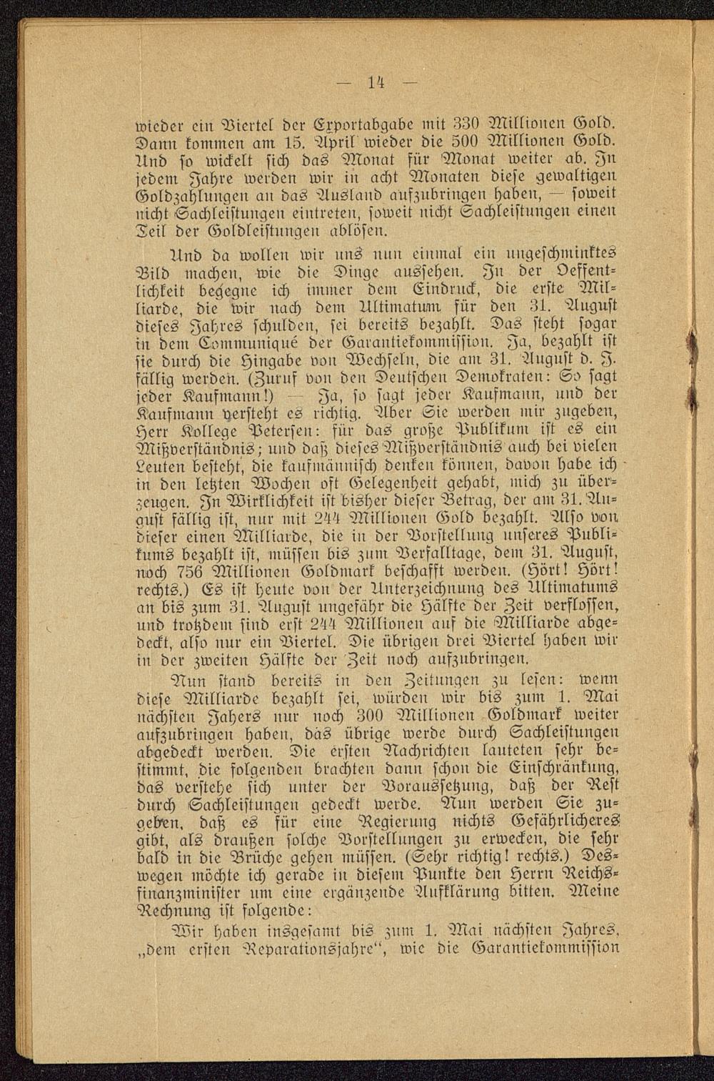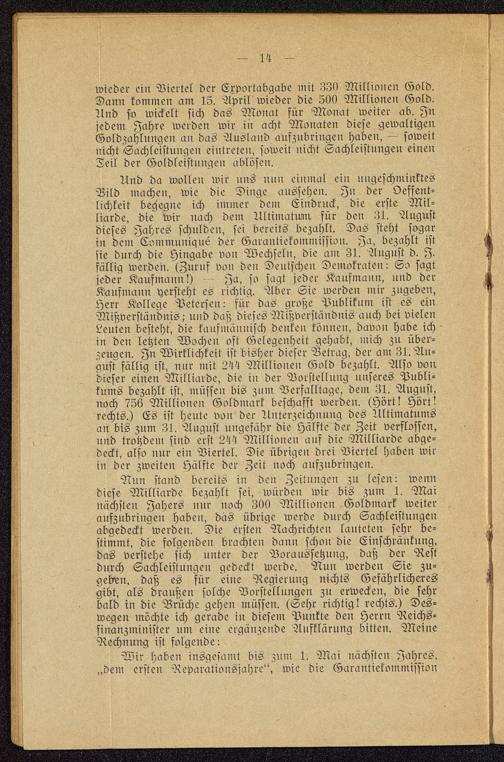 Auszug aus der Rede des Reichskanzlers und Reichsfinanzministers D. Wirth.