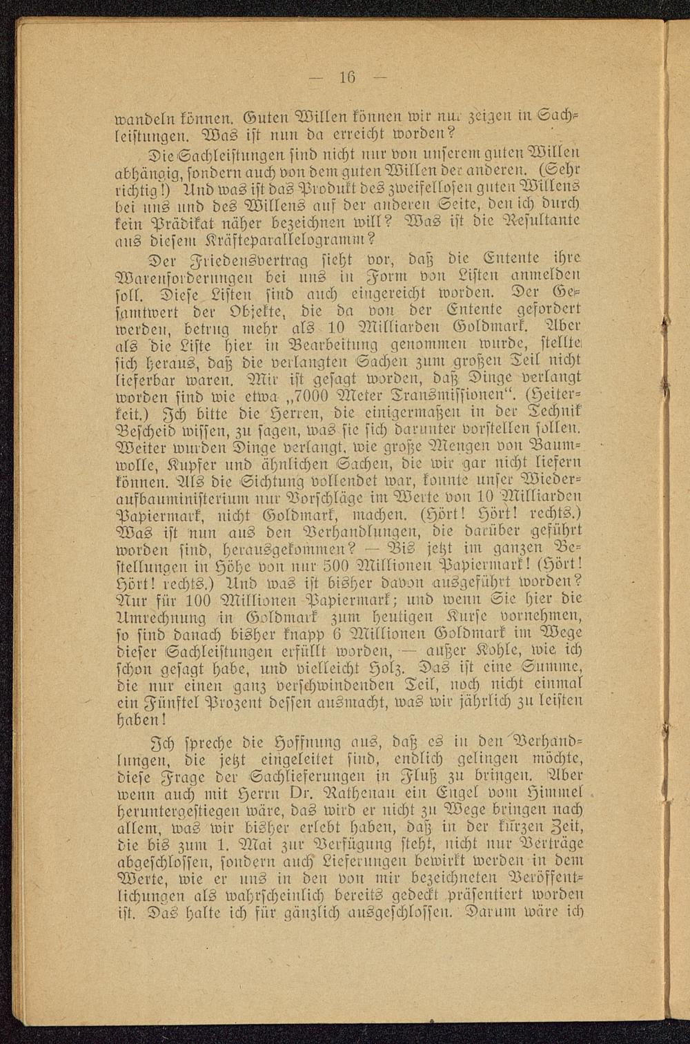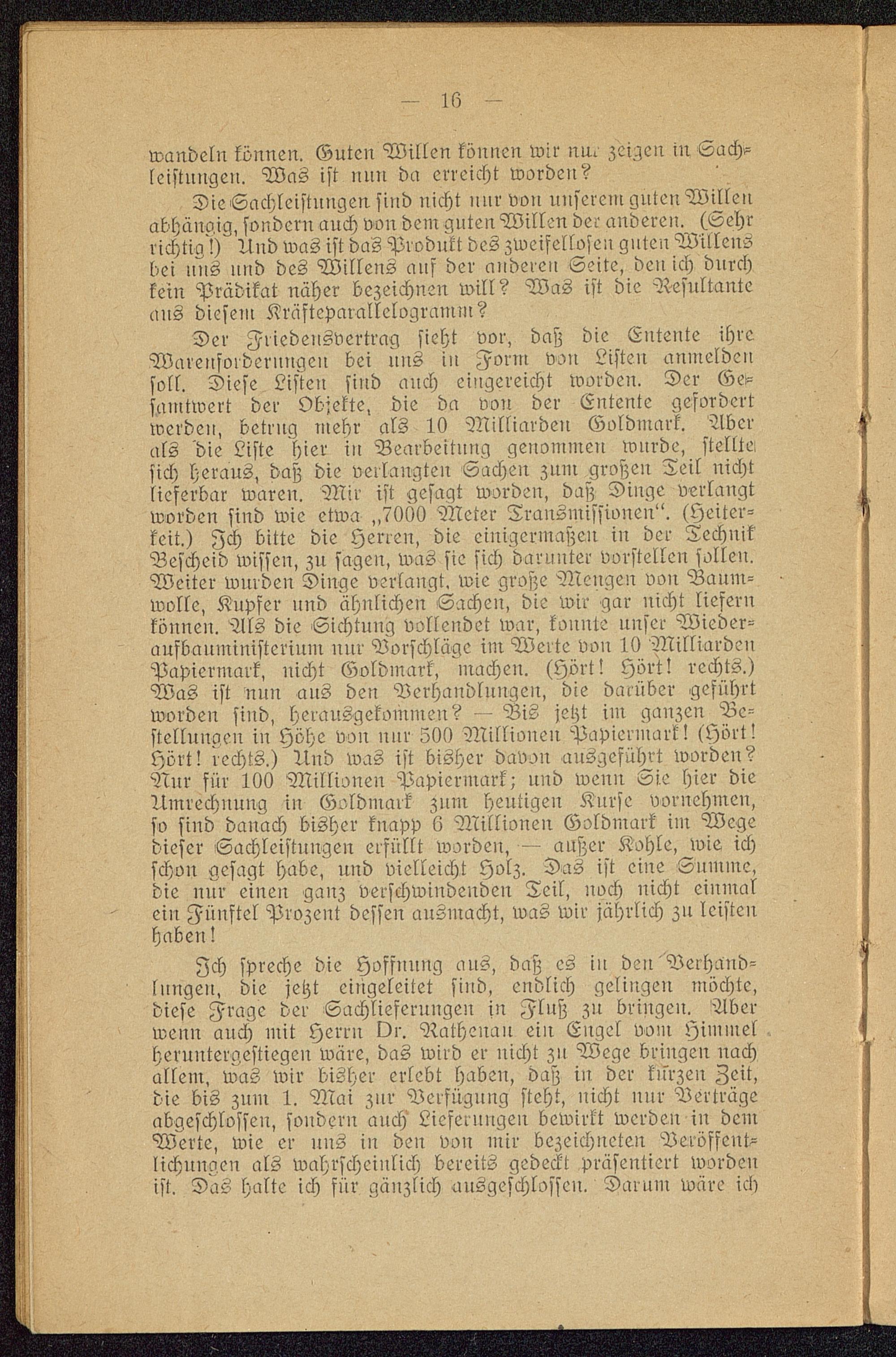 Auszug aus der Rede des Reichskanzlers und Reichsfinanzministers D. Wirth.