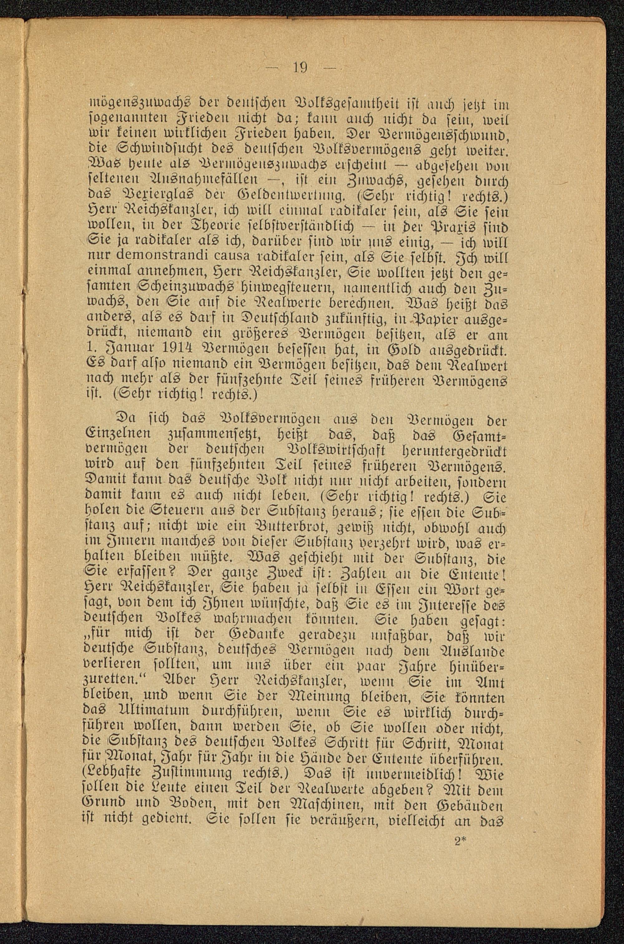 Auszug aus der Rede des Reichskanzlers und Reichsfinanzministers D. Wirth.