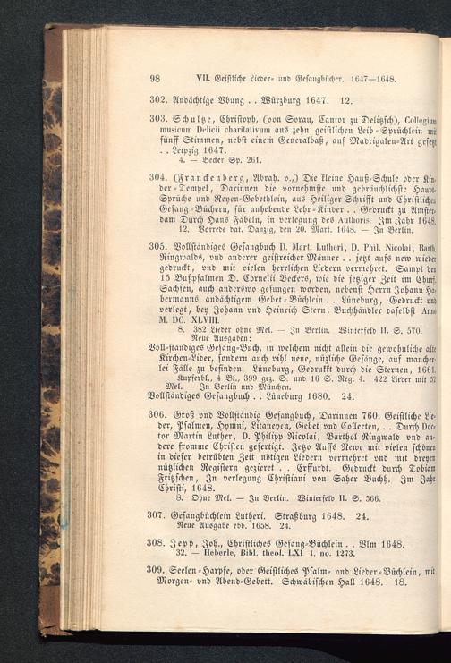 VII. Geistliche Lieder- und Gesangbücher