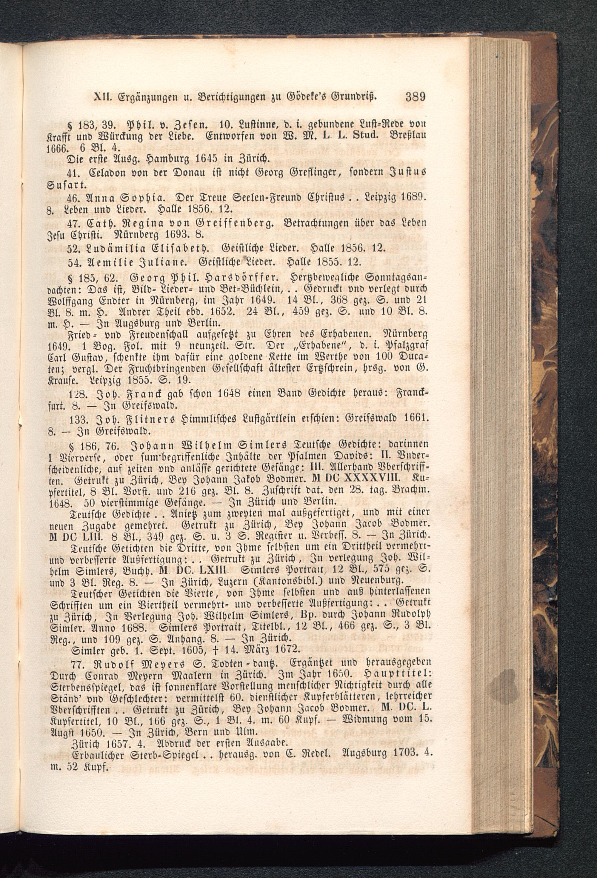 XII. Ergänzungen und Berichtigungen zu. K. Gödeke's Grundriß