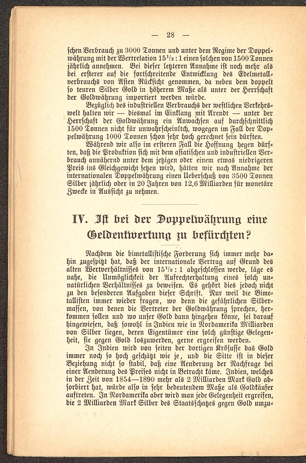 IV. Ist bei der Doppelwährung eine Geldentwertung zu befürchten?