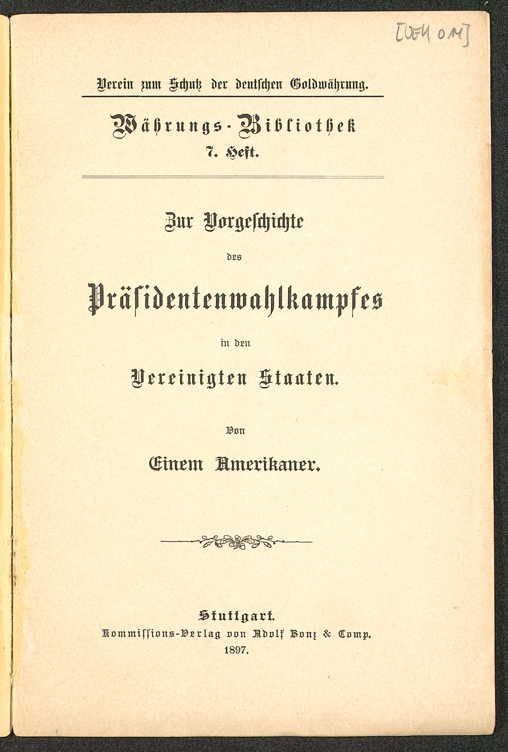 Zur Vorgeschichte des Praesidentenwahlkampfes in den Vereingten Staaten