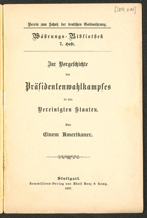 Zur Vorgeschichte des Praesidentenwahlkampfes in den Vereingten Staaten / von einem Amerikaner