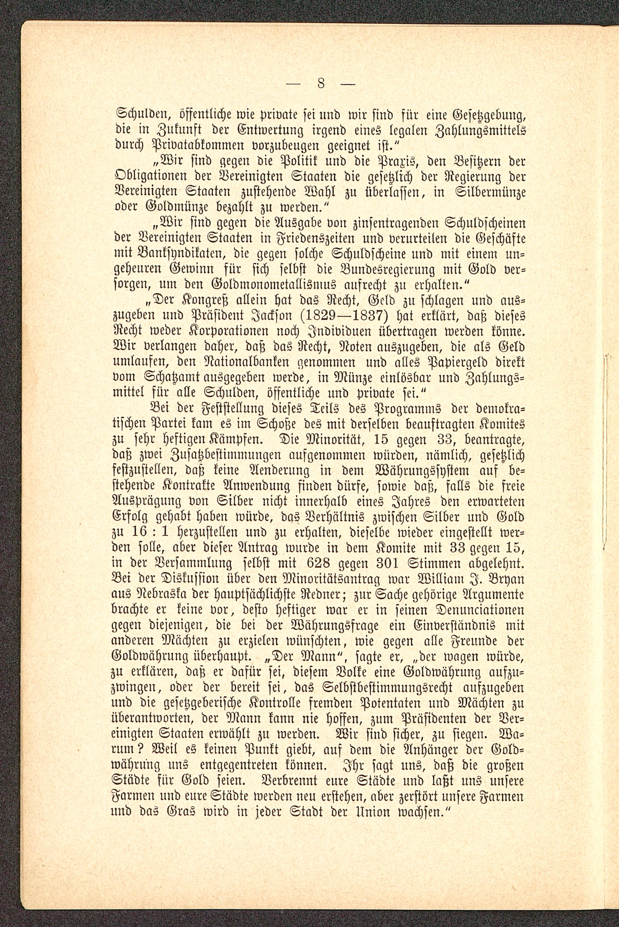Der Waehrungs- und Wahlkampf in den Vereinigten Staaten von Amerika