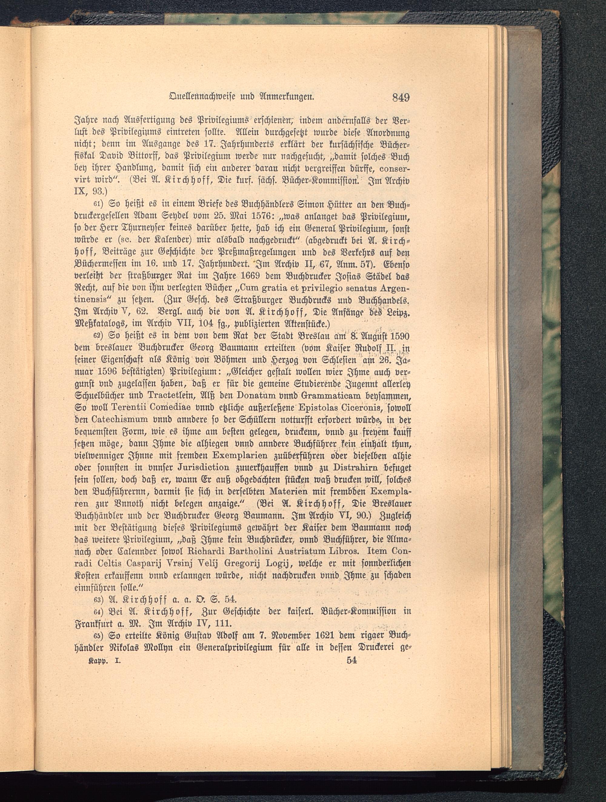 Geschichte des deutschen Buchhandels bis in das siebzehnte Jahrhundert : mit 3 lithogr. graph.-statist. Taf. / Friedrich Kapp. Aus. d. Nachlasse d. Verf. hrsg. von d. Histor. Komm. d. Börsenvereins d. Deutschen Buchhändler