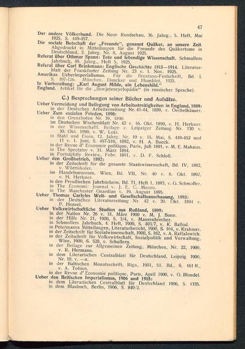C.) Besprechungen seiner Bücher und Aufsätze.